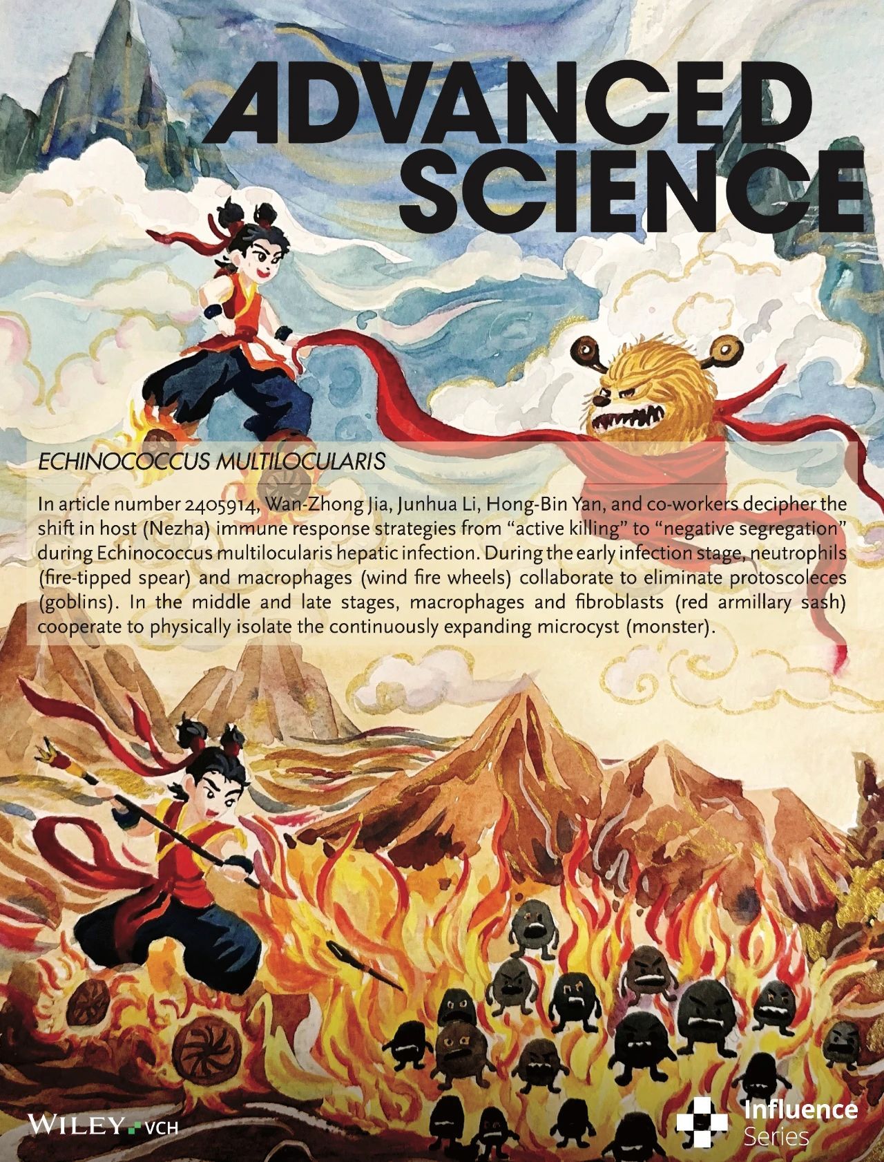 5月15日,来自华大生命科学研究院、中国农业科学院兰州兽医研究所、兰州大学的科研团队将宿主肝脏免疫系统“画”成了“哪吒”,形象地描述宿主免疫系统对抗多房棘球蚴感染的免疫策略。相关内容以插画形式发表在国际期刊《先进科学》上。