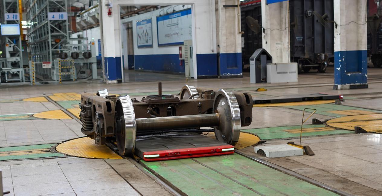 5月19日,走进成都北车辆段修车车间转向架检修工作区,记者看到一辆长约3米、身材扁平的货车转向架推送自动导向小车,正运载着重达数吨的铁路货车转向架以1.2米每秒的速度,行驶在L型的钢轨线上,自动完成运输工作。