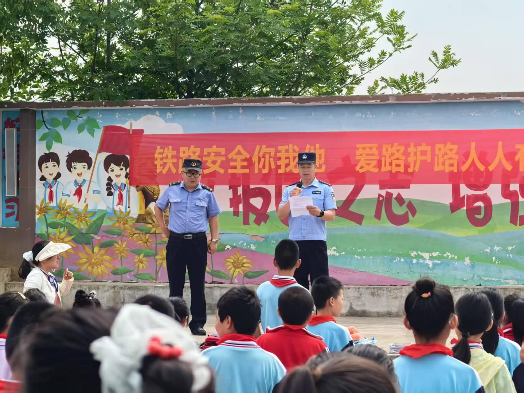在武汉市黄陂区滠口街道第三小学,武汉北车站组织青年志愿者和安全生产专业管理人员担当铁路安全知识宣讲员,向师生们宣读《致铁路沿线中小学的一封信》,用“童言童语”普及铁路安全常识,以“小手拉大手、学生带家庭”的形式共筑平安铁路。