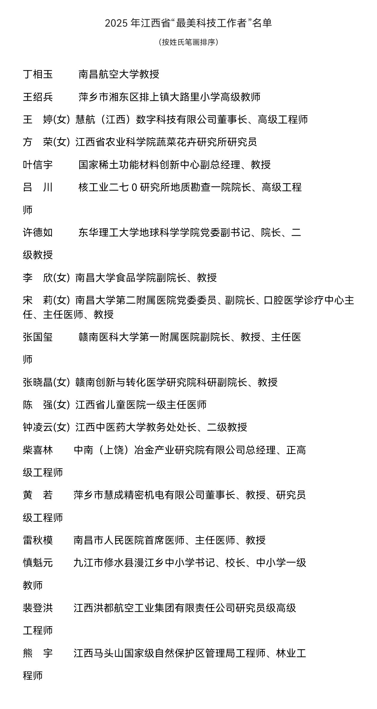 第二届江西省“创新争先奖”获得者和2025年江西省“最美科技工作者”及其单位同事、家属代表,省级学会(协会、研究会)代表,院校、三甲医院、企业(园区)科协代表,省科协机关全体干部、直属单位副处以上干部等共200余人参加了活动。