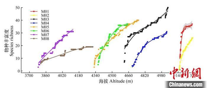 以往研究受限于山体的可达性、人力和财力的有限性,特别是在拥有众多高大山峰的青藏高原地区,由于道路阻碍,且高寒缺氧等客观条件,这些研究仅沿公路沿线或附近调查了山体低海拔区域或山谷的物种丰富度和植被类型,而忽略了山体自身的垂直带变化。