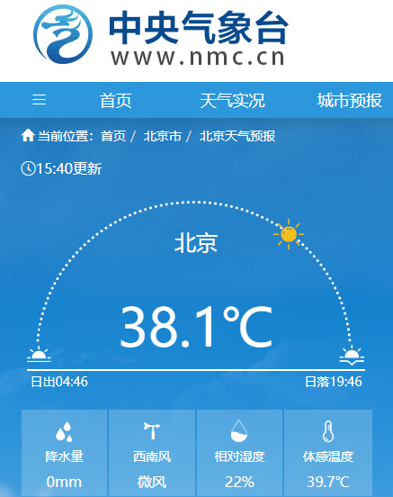 今天(6月22日)截至15:40,北京最高气温达到38.1℃,为今年以来气温新高。预计23日至25日,北京还将出现35℃以上的高温热浪天气,请注意防暑降温!