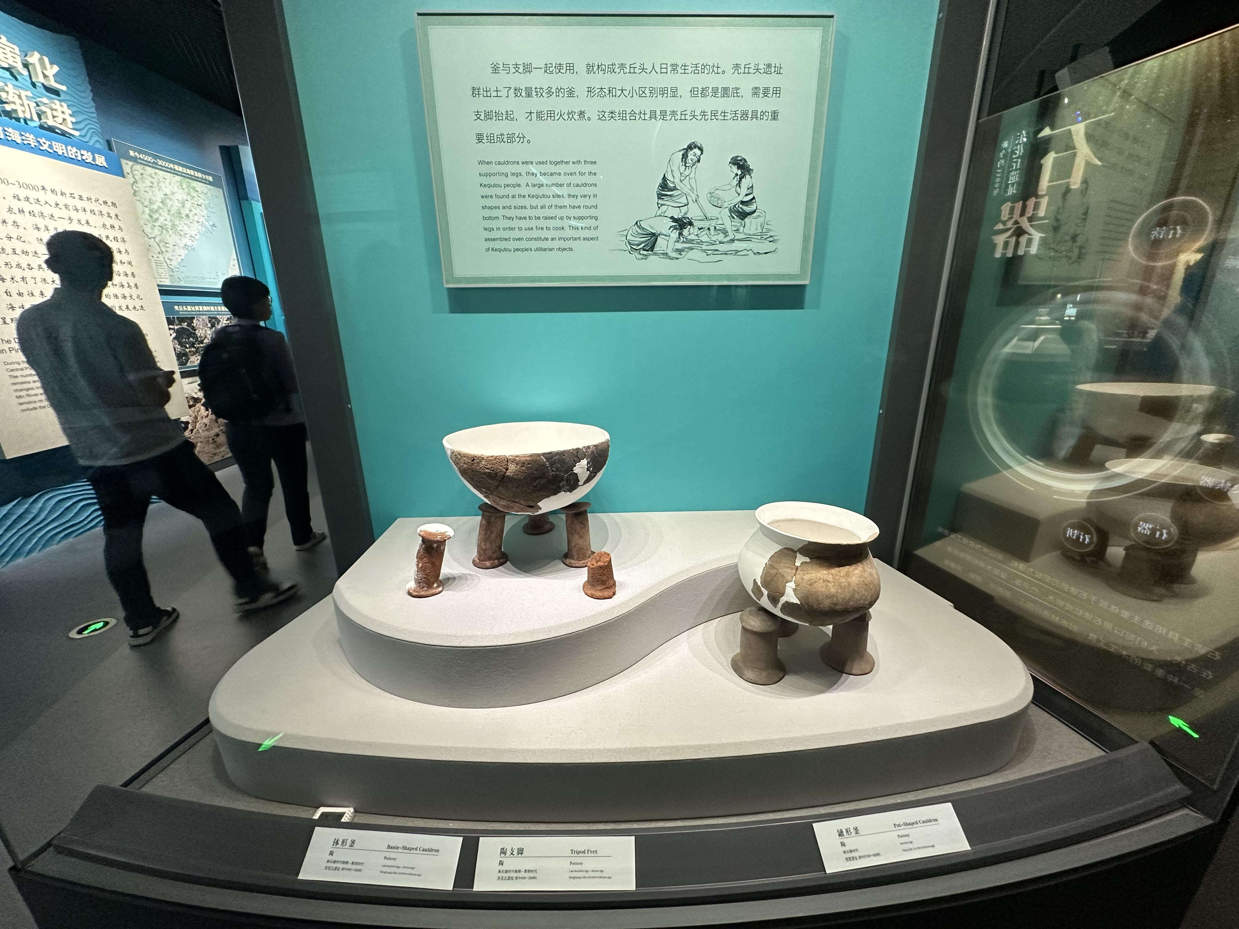 据了解,壳丘头遗址群出土了数量较多的釜,形态和大小区别明显,但都是圜底,需要用支脚抬起,才能用火炊煮。这类组合灶具是壳丘头先民生活器具的重要组成部分。