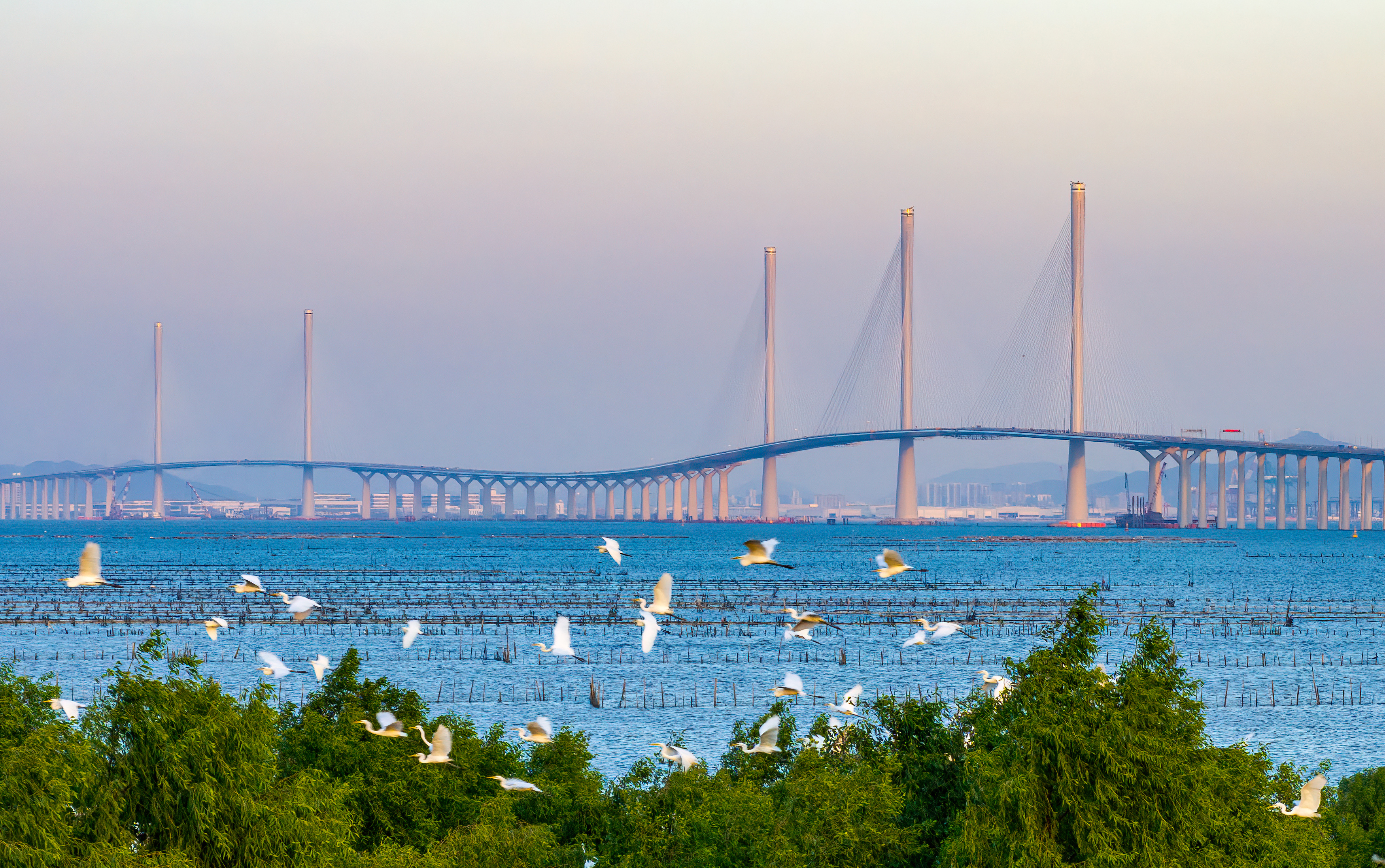 黄茅海跨海通道是贯彻落实《粤港澳大湾区发展规划纲要》的首个重大工程项目,也是粤港澳大湾区高质量发展新地标。作为港珠澳大桥的西延线,其连接广东珠海与江门台山。跨海段长约14千米,设置黄茅海大桥和高栏港大桥2座主桥。
