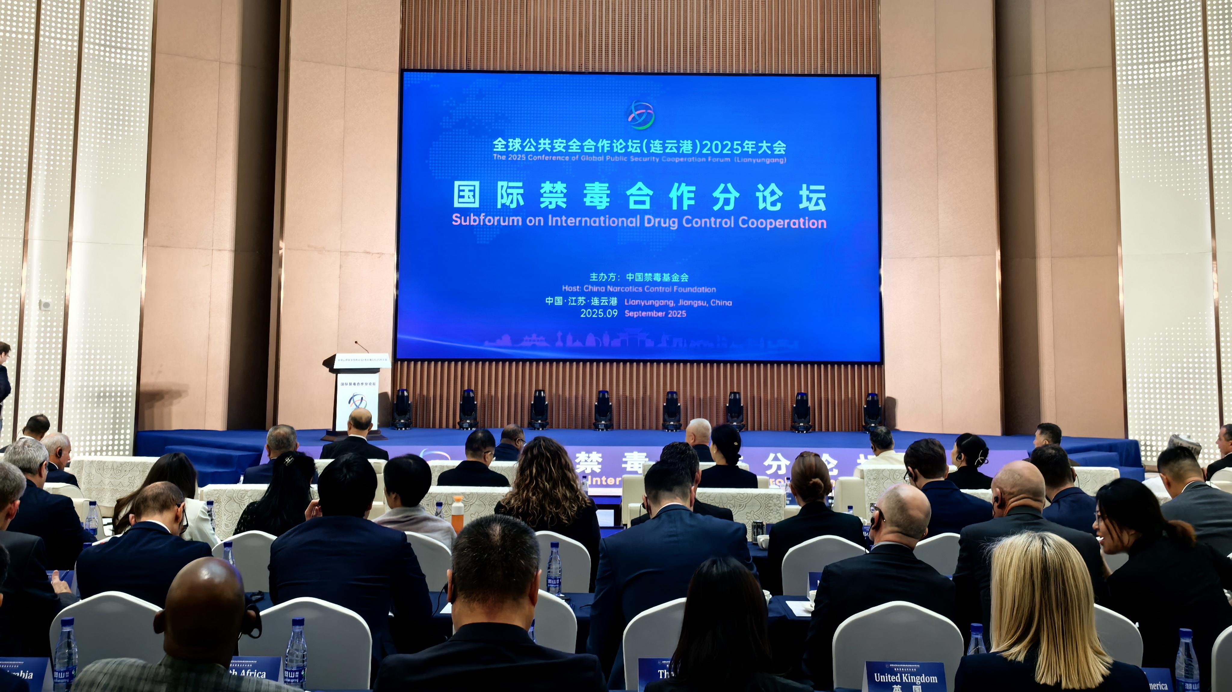 9月18日,全球公共安全合作论坛(连云港)2025年大会国际禁毒合作分论坛在江苏省连云港市举办,来自相关国家和地区政府部门、执法机构、国际组织、非政府组织的代表,相关产业及学术界专家、学者等100余人应邀参会。分论坛由中国禁毒基金会主办。
