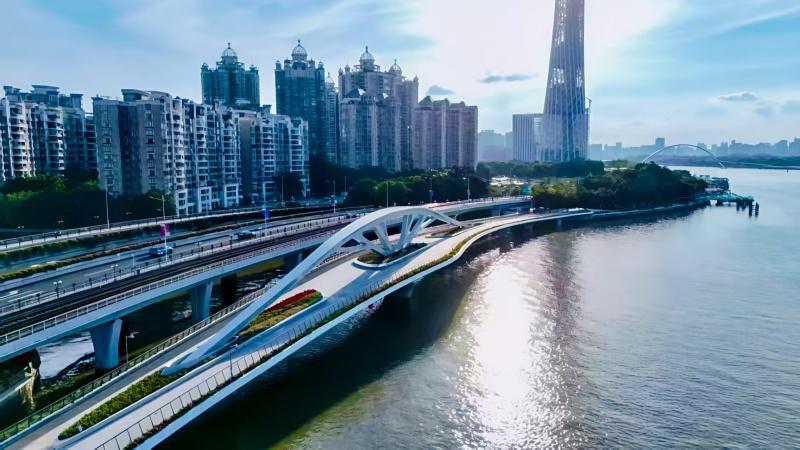 黄埔涌步行桥建成后,有效打通广州大桥南至猎德大桥南滨水段的慢行断点,显著提升区域通行效率,助推“15分钟滨水生活圈”构建,进一步完善广州城市慢行系统网络,推动珠江沿岸公共空间互联互通。此外,作为城市艺术品与广州海心桥在珠江上遥相呼应,为打造世界级滨水活力区增添新动能。