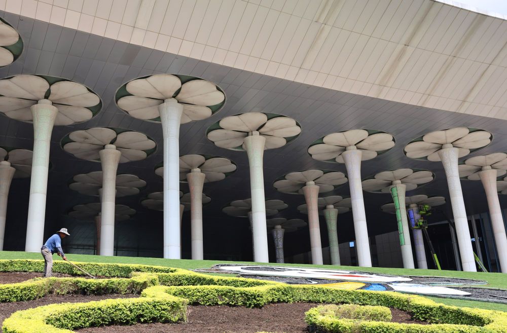 从空中俯瞰,进博会举办场所国家会展中心(上海)的外形如同一棵“四叶草”,静待着八方宾客。