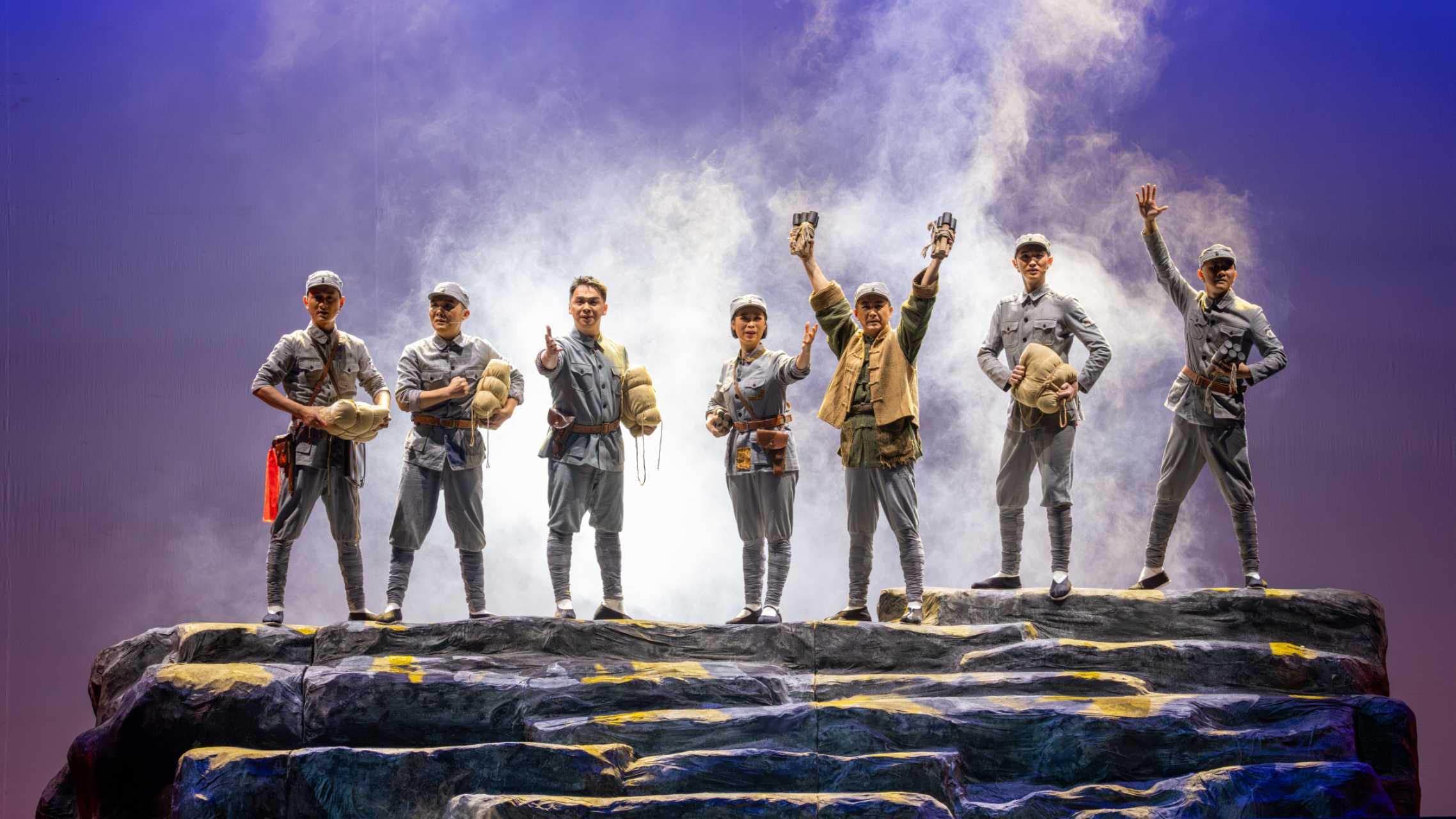 黄梅戏《太阳山上》改编自皖籍作家季宇的中篇小说《最后的电波》。故事发生在抗战时期,国民党军报务员李安本为避战乱逃回家乡,却被新四军“请”上太阳山。从为赚钱留在山上发送电报,到与新四军战士们共历生死,他被中国共产党人坚定的革命信念、必胜的抗日决心以及新四军战士们的铁血情怀深深打动,最终实现精神蜕变和成长。从自私怯懦转变为舍己为革命,实现精神蜕变和成长,深刻传递出中国人的革命精神与家国情怀。
