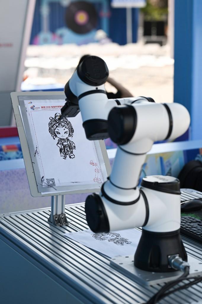 本届戏曲周特设“戏韵智界”专区,通过机器人、VR/MR、AI等前沿技术打破传统观演边界。月季园内,“孙悟空”“牛魔王”高动态机甲与游客互动表演,逼真造型与灵活动作引发阵阵欢呼;银杏大道上的AI复古报纸机,3秒即可生成印有个人形象的戏曲主题报纸,成为游客打卡热门;身着戏服的机器狗“哮天犬”则凭借萌趣模样,成为孩子们的最爱。此外,活动还联合QQ音乐、酷狗等平台推出“国粹典藏”名段专辑,收录15位梅花奖得主在内的30位名家共88首经典唱段,供公众免费收听,让戏曲之声借助数字平台触达更广泛的人群。