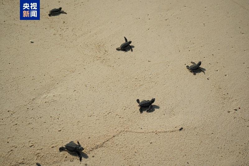国庆期间,南沙永暑礁沙滩迎来了一份特别的“生命贺礼”——一批绿海龟集中破壳而出。8月10日深夜,科研与驻礁团队记录到一批绿海龟上岸产卵。历经52天自然孵化周期,这批海龟蛋在国庆假期迎来“新生时刻”。这也是科研与驻礁团队首次清晰记录到永暑礁沙滩绿海龟孵化全过程,标志着此次绿海龟繁育与保护工作取得阶段性成功。