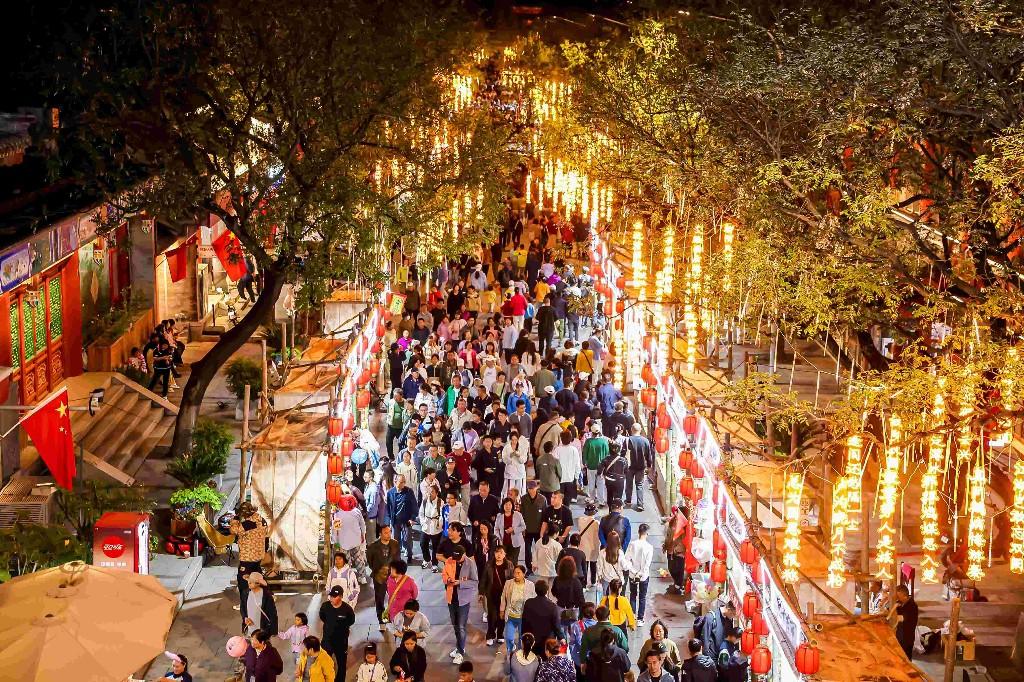 “红色光影”露天影院将《永不消逝的电波》等经典影片投影于城墙“天然幕布”,与“城墙上的记忆”主题摄影展形成互动——百余幅历史照片沿城墙布展,在光影烘托下与斑驳弹痕交织成跨越时空的对话。千余个诗词灯条与互动打卡点位点亮古城夜游,让科技为文化体验点睛。