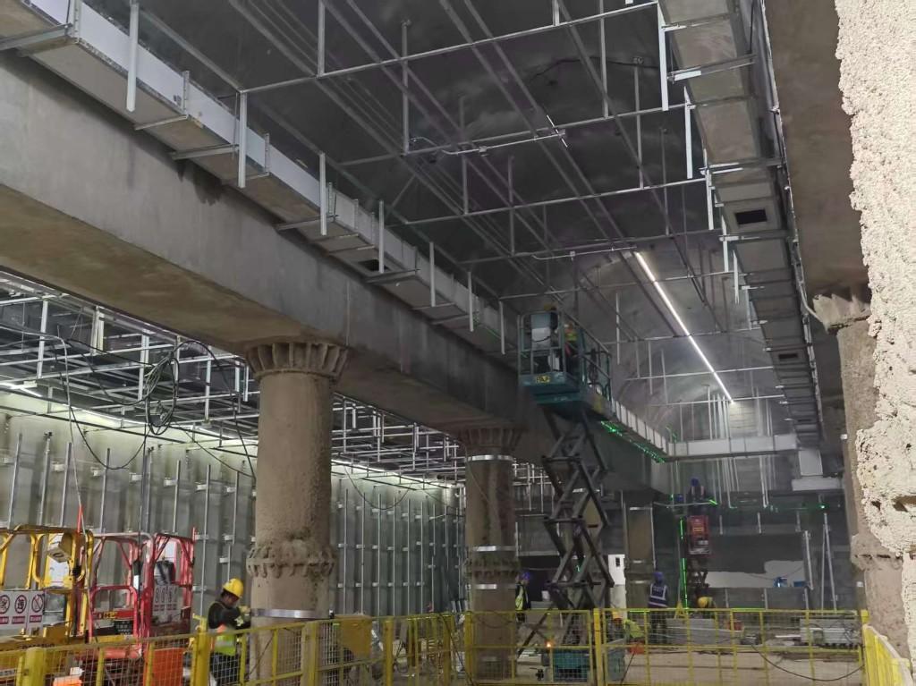 科技是机电安装精准高效的核心支撑。近日,文化广场站施工区域,站长郭江手持水平仪校准设备层风管位置,3名工人协作吊装1.2米镀锌风管,测量人员实时传数据,20分钟实现风管与预设接口完美对接,后续再用防火密封胶细致封堵缝隙,毫米级精度把控保障通风系统运行效果。更值得关注的是,工农大路站技术团队依托BIM模型提前模拟管线排布,精准规避交叉冲突问题,让风管碰头安装效率直接提升25%;南湖广场站对已安装的风阀进行3次以上启闭测试,以数据化检测确保设备运行稳定性,各车站风管安装均以科技手段筑牢质量防线。
