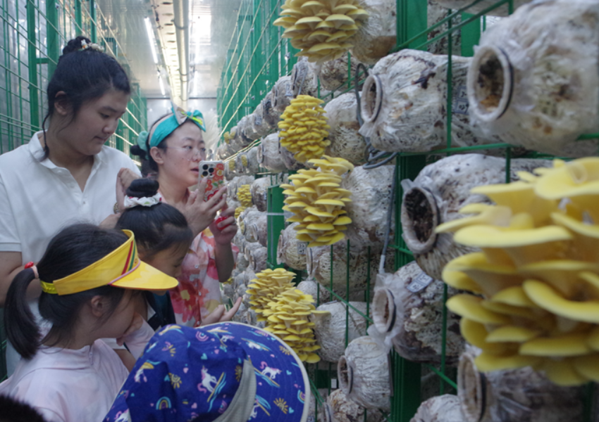 活动现场还安排了数字集装箱内部参观环节,学生和家长们走进这个“可移动的蘑菇工厂”,一探究竟。据现场专家介绍,“数字集装箱菇房”内置了集环境监测、温湿度控制及精准生长模型于一体的数字化种植系统,能精准调控蘑菇生长环境,为其营造最佳生长条件,实现“全年无休”生产。这种模式选址灵活,在屋顶、村头等地都能安装,还不受季节限制,真正做到了“种得轻松、吃得放心”。