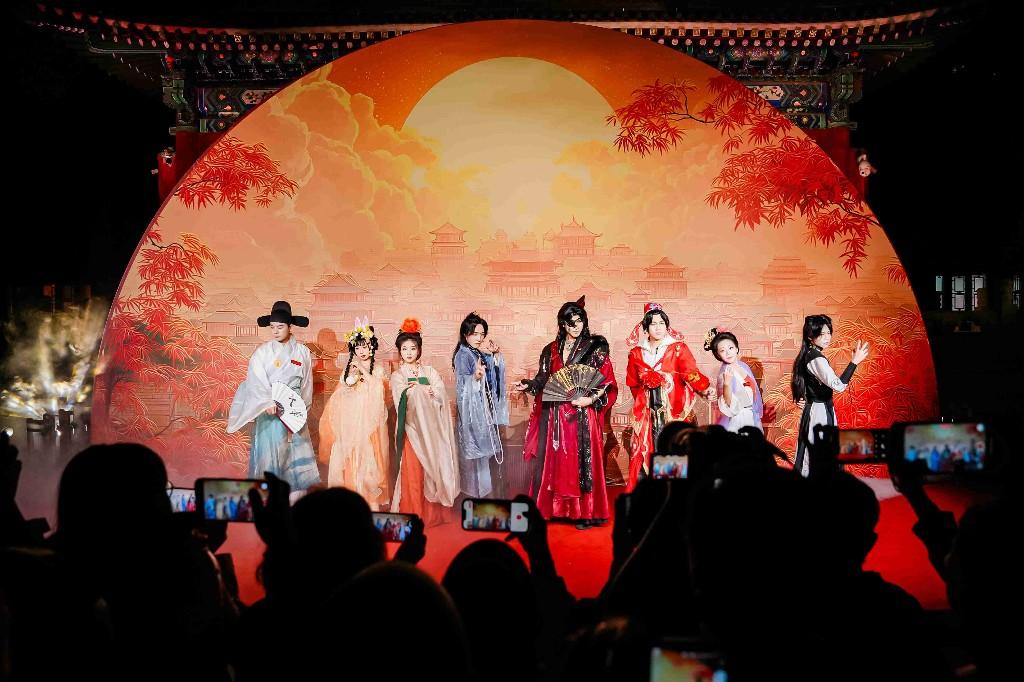 活动依托科技化场景营造,让古建焕发新活力。现场以朱红、明黄等传统色调为基底,搭配智能暖光系统,灯光与空中明月实时呼应,精准还原“天上月圆、人间梦好”的视觉效果;庭院与市集区域的主题灯饰融入宫廷与中秋意象,通过灯光控制技术实现夜幕下“宫阙映月”的动态诗意场景,让游客仿佛穿越千年。