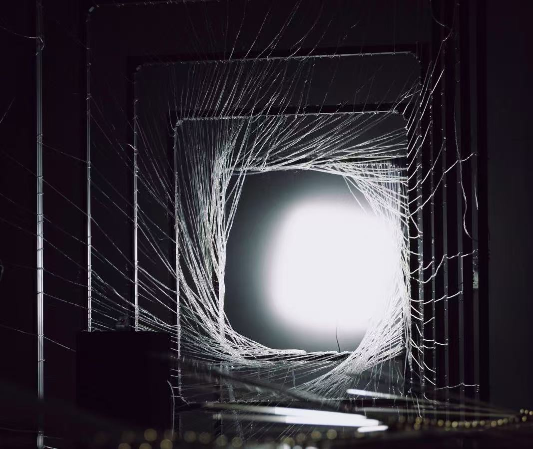 例如,参展作品《候雨》以感应装置驱动水滴,随观者动线在水写布晕染水墨潮痕,履带循环传送将瞬间定格为永恒,隐喻城市对生态山水的守望;电子科技大学学生创作的作品《壳》,用钢与尼龙构建机械海浪,通过无生命装置对自然形态的模拟,叩问人类制品与生态的共生边界;跨校合作作品《络》,以金属框架与塑料软管搭建出蜘蛛织网般的立体网状结构、虫穴般的交错通道,还原自然“络”的物理形态;更以心率检测仪为桥梁将人体抽象的心率信号转化为塑料软管内可见的水流脉动,让人体“生命脉络” 的节律与自然“网络”的形态相互呼应。
