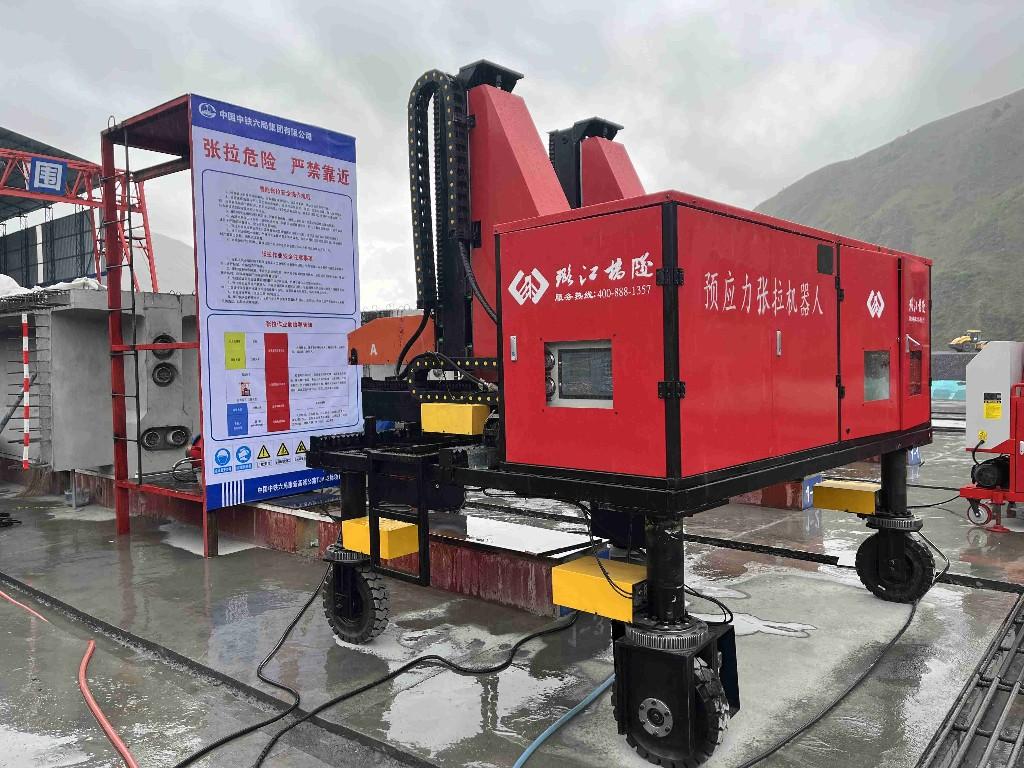 康新高速公路TJ-4标需完成7.077公里路段施工,其梁场承担25米、30米、40米三种规格共778榀预应力T梁预制任务,梁体预应力张拉与压浆是核心工序。自智能张拉机器人投用后,施工成效显著:数据显示,梁场预应力施工与压浆综合效率提升超30%,单榀梁工期缩短1.5天;人力成本降低25%,材料损耗减少8%,精准解决传统工艺效率低、成本高、精度差的痛点。