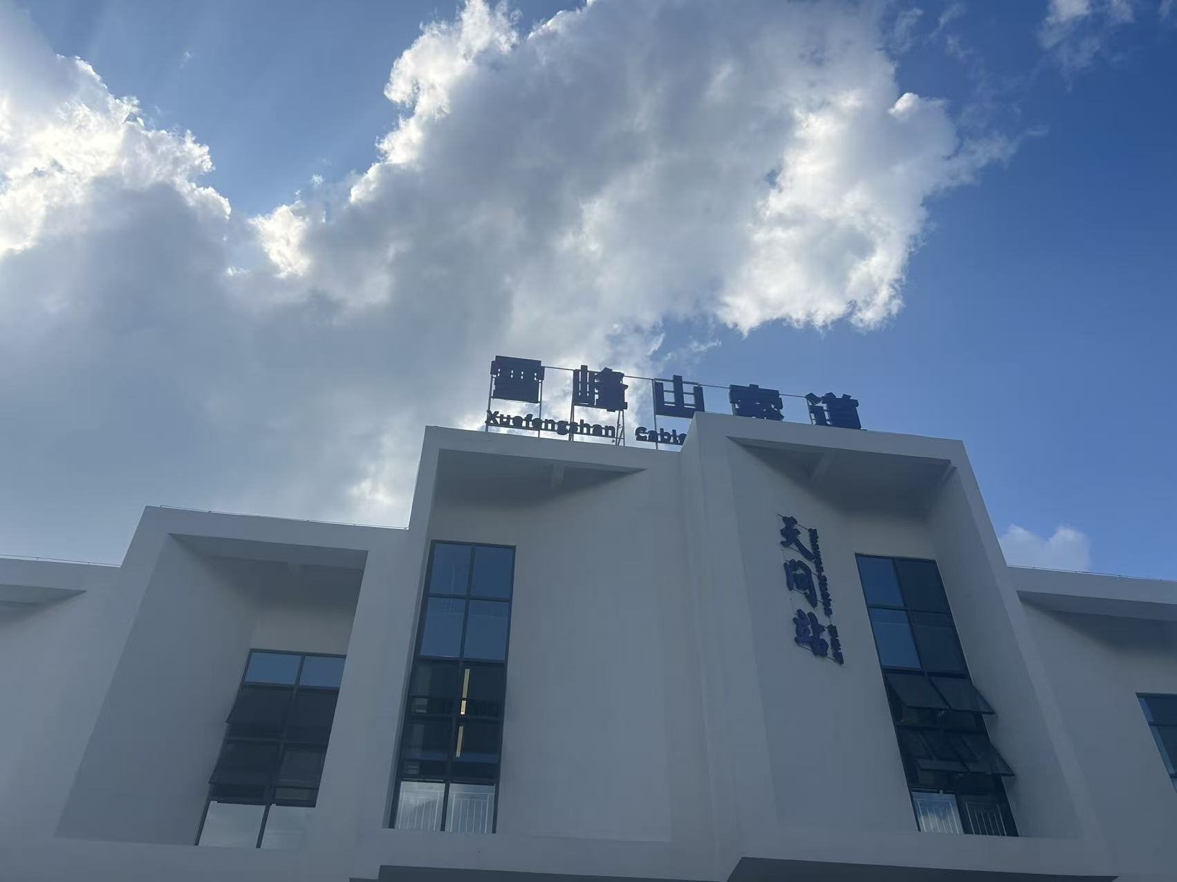 今年9月索道建成并通过国家验收,9月12日正式首航。索道开通后,最高时速可达每秒6米,最短单向时长23分钟,单向运量每小时1200人。索道线路串联起了溆浦穿岩山、山背花瑶梯田、隆回虎形山等核心景区,形成了以溆浦南高铁站为中心的旅游集散枢纽,实现了高铁与索道的“零距离换乘”。