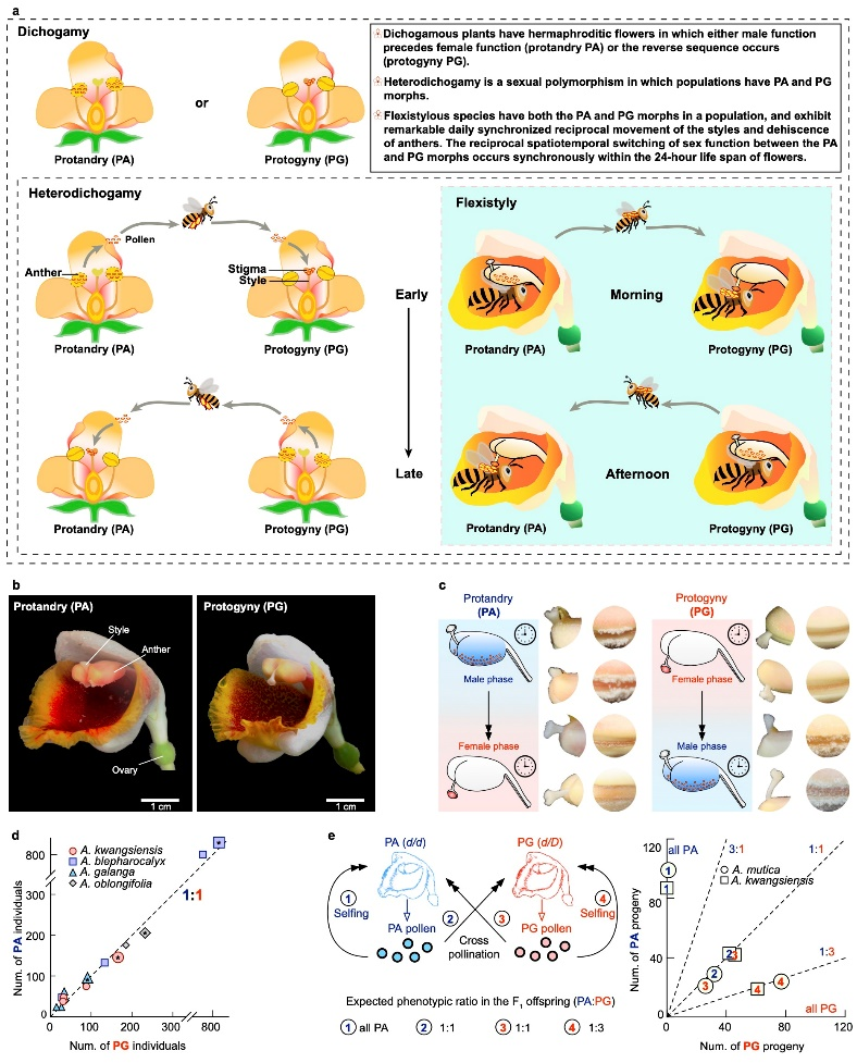 众所周知,植物“雌雄异熟”,主要是避免自花授粉。自达尔文时代起,这一现象就备受关注,但其分子调控机制长期未明,成为百年谜题。其关键障碍在于多数物种的雌雄异熟类型是固定的,要么雌先熟,要么雄先熟,缺乏可用于遗传学解析的分离材料。