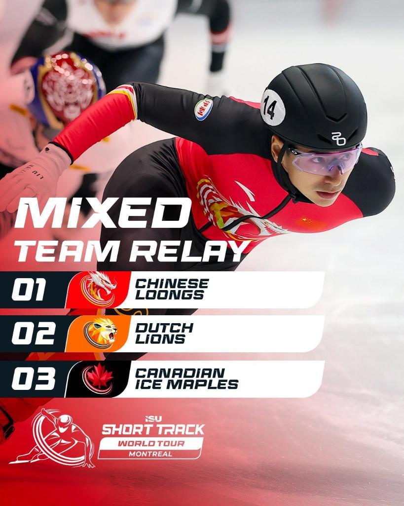 国际滑联官网消息,2025-2026赛季国际滑联短道速滑世界巡回赛暨米兰冬奥会资格赛蒙特利尔站当地时间12日收官,中国队在混合团体接力项目中夺冠,收获新赛季首枚金牌。