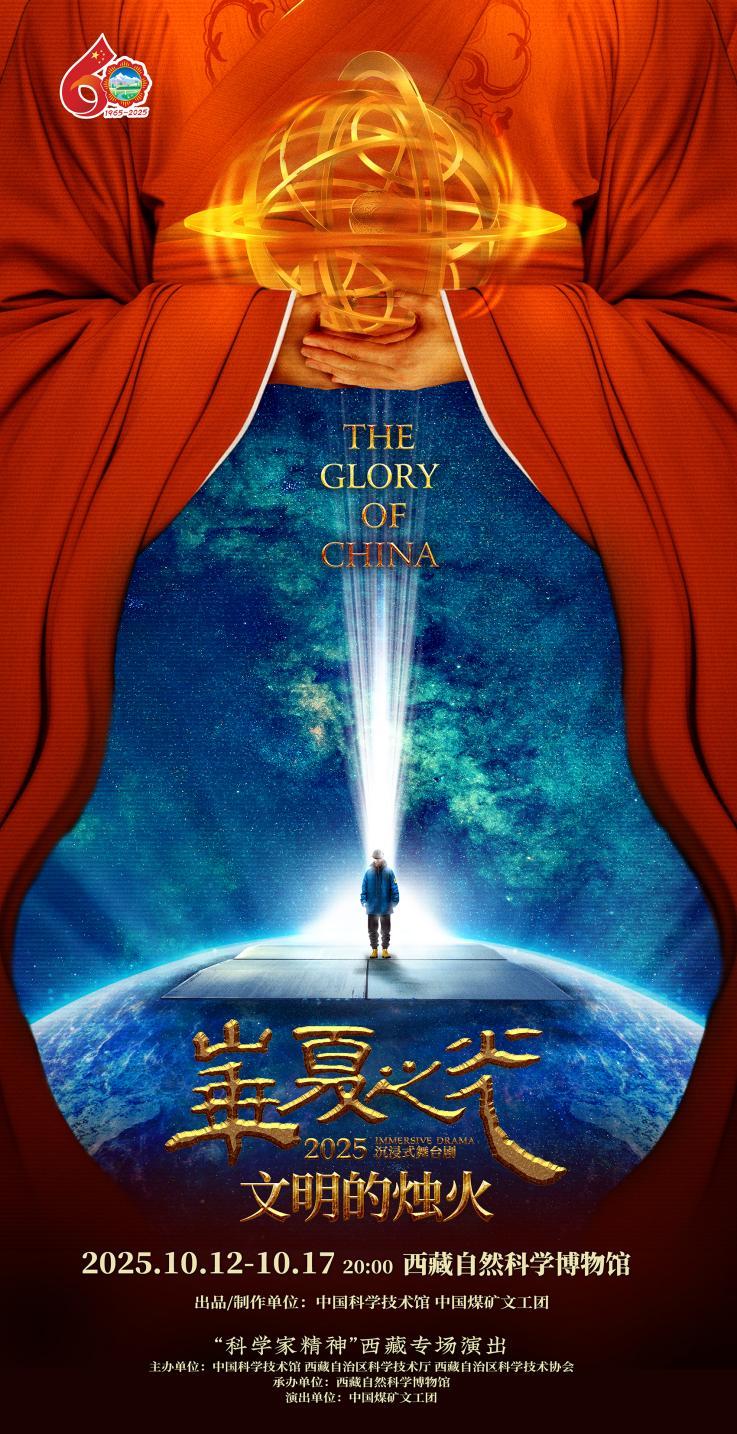 10月12日,由中国科技馆与中国煤矿文工团联合出品的原创沉浸式舞台剧《华夏之光——文明的烛火》,在西藏自然科学博物馆拉开为期6天的公益演出序幕。作为该剧 2025年全国巡演的收官之站,此次演出以“科学+艺术+文化”的创新融合形式,为西藏各族群众带来一场科学文化盛宴,目前已开放观众预约。