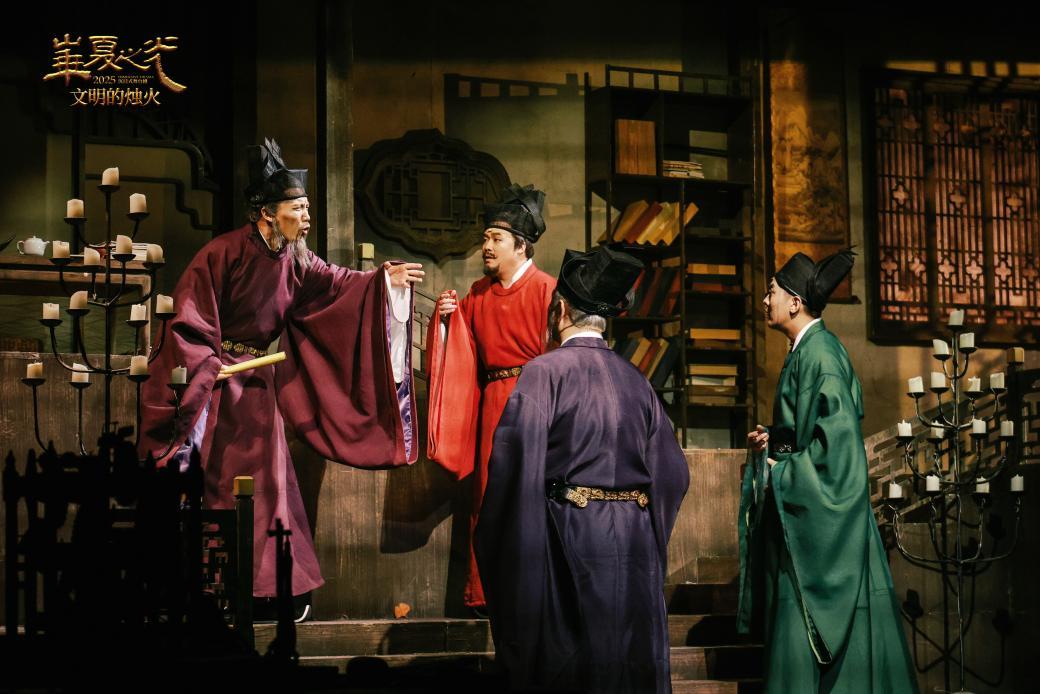 《华夏之光——文明的烛火》自2024年国庆首演以来,凭借独特叙事视角与沉浸式舞台表现广受好评。剧目以北宋1054年“天关客星”观测记录和当代高能天文学中“标准烛光”——蟹状星云研究为主线,构建跨越千年的科学对话。剧中,北宋科学家苏颂、司天监官员杨惟德与当代“拉索”科研团队实现精神联动,生动展现中国古代天文学的卓越成就、当代科技自立自强,以及科学精神的赓续传承。