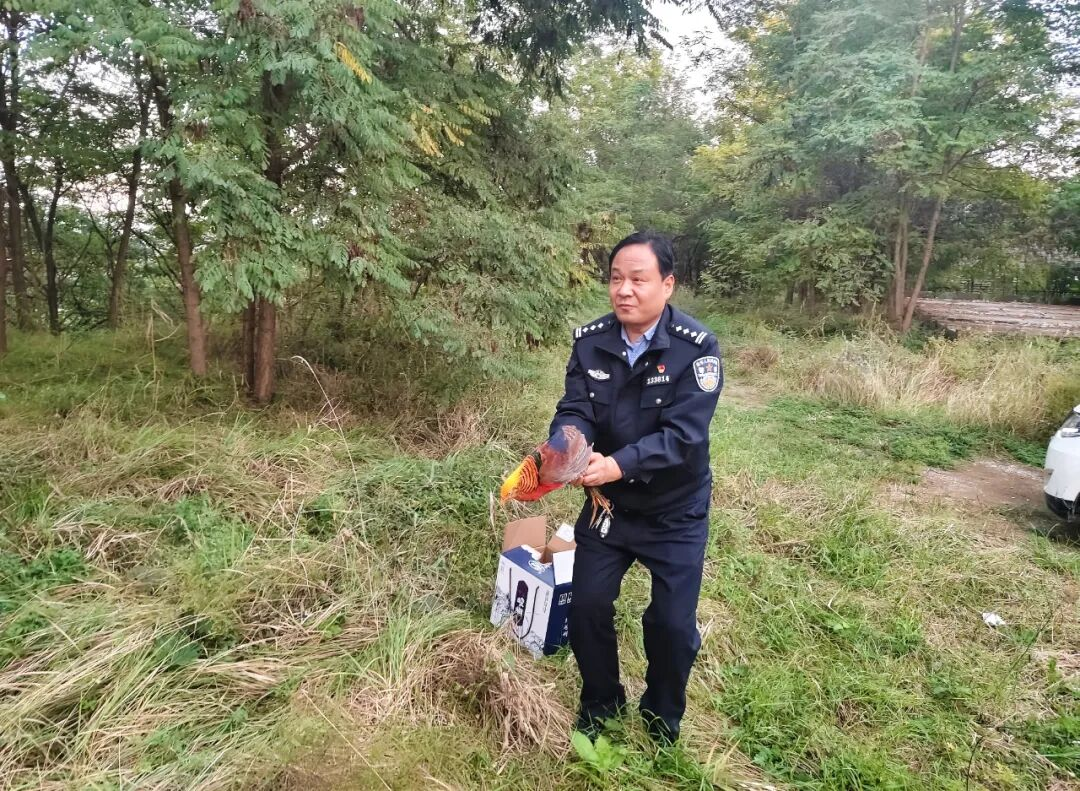 近日,甘肃省灵台县公安局上良派出所民警成功救助一只国家二级保护动物红腹锦鸡,并在专业指导下将其安全放归自然。