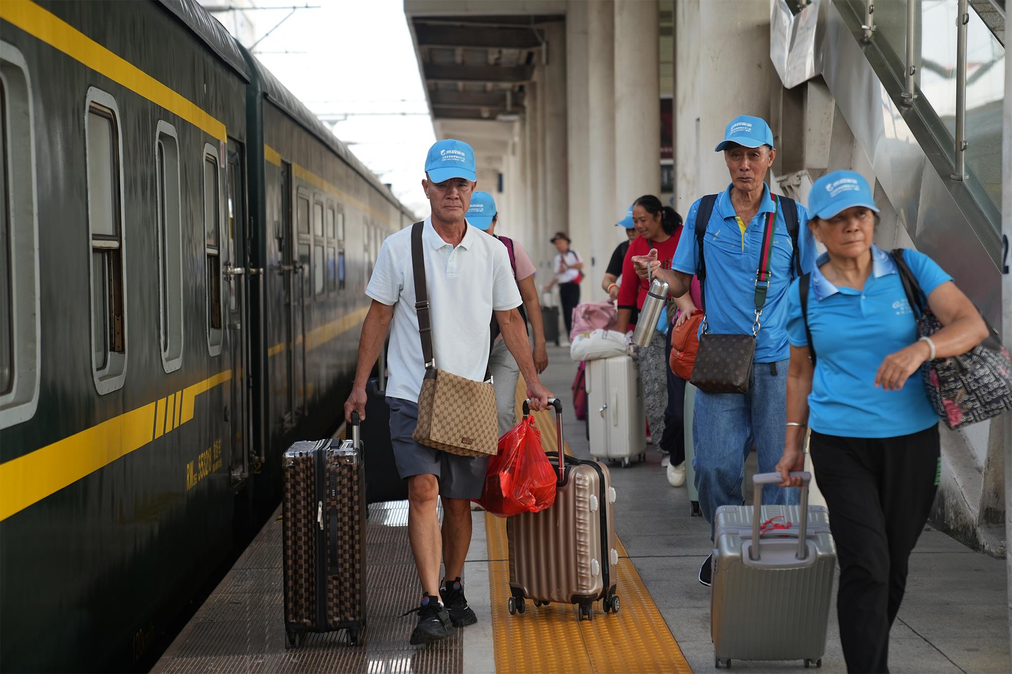 记者从中国铁路南宁局集团有限公司获悉,10月11日15时10分,首趟“桂行天下号”普惠适老化旅游专列驶出广西玉林站,678名旅客将在玉林、贵港、柳州、金城江等车站陆续上车,开启为期10天的西北之旅。