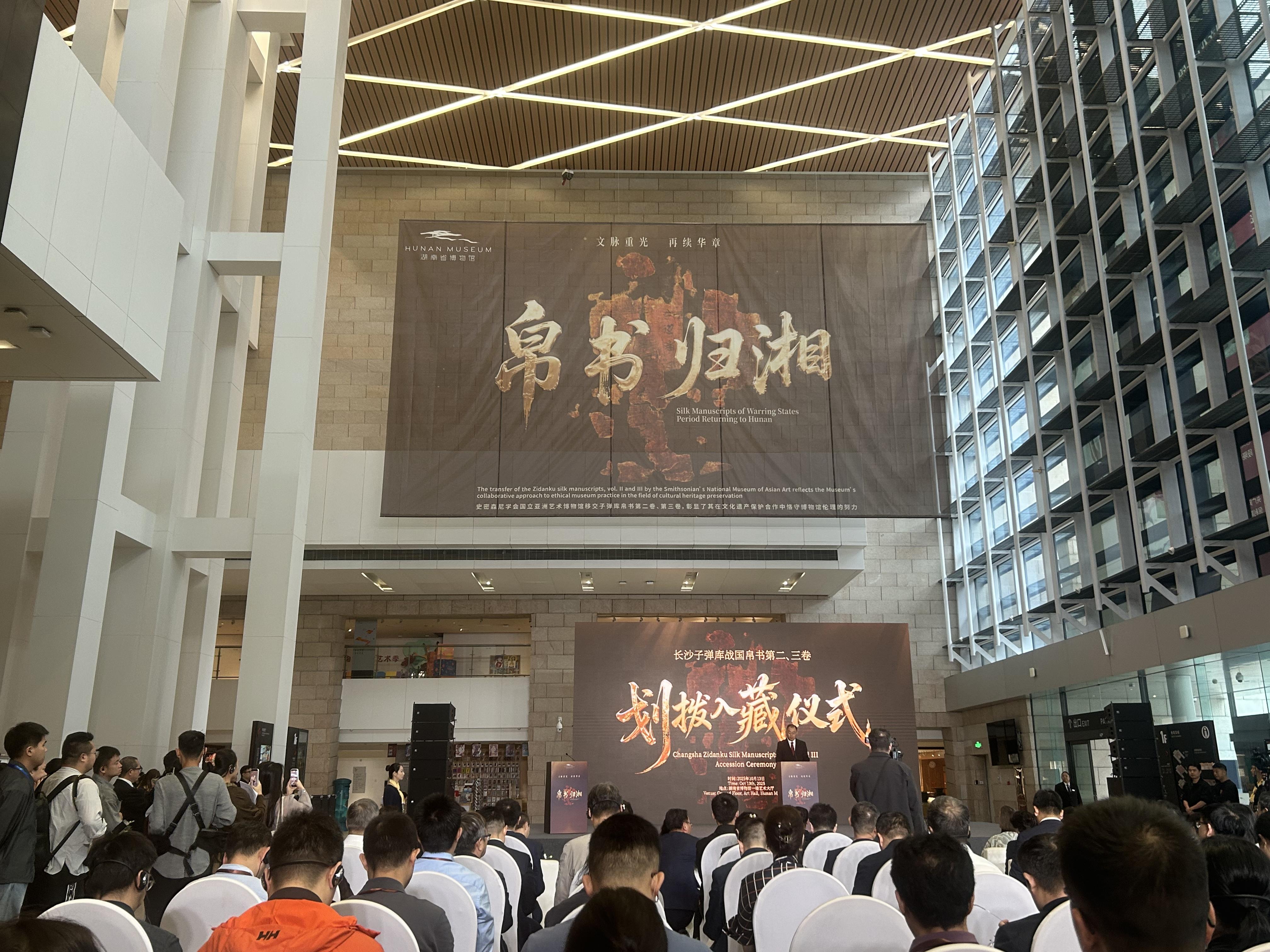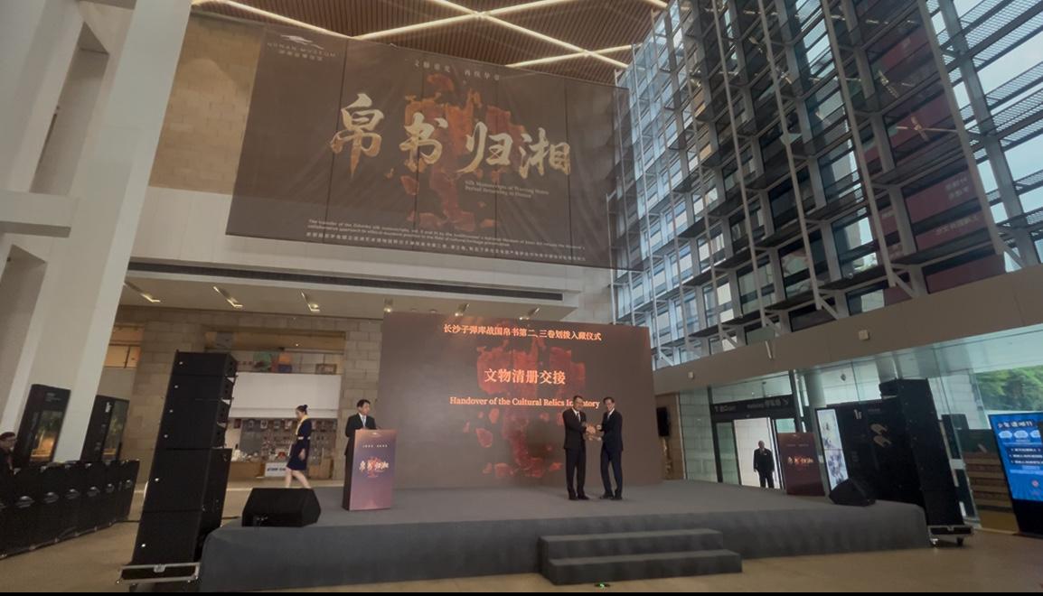 10月13日,长沙子弹库战国帛书第二、三卷划拨入藏仪式在湖南省博物馆举行。国家文物局副局长唐炜宣读《长沙子弹库战国帛书划拨函》,并与湖南省完成《长沙子弹库战国帛书文物清册》交接。至此,流失海外79载的瑰宝《五行令》《攻守占》正式回归帛书原出土地湖南。