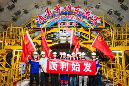 10月12日,由沪杭铁路客运专线股份有限公司建设、中铁隧道局施工的新建南通至宁波高速铁路(以下简称通甬高铁)苏州东隧道盾构区间“红船号”盾构机在苏州市吴中区甪直镇5号竖井顺利始发。
