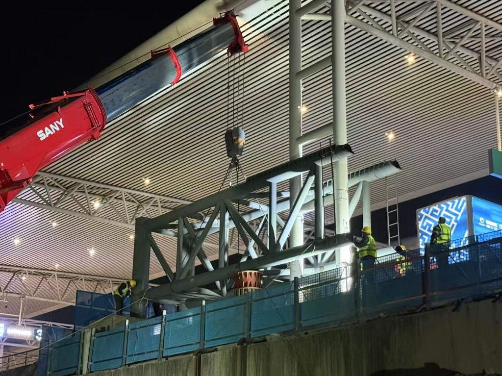 项目现场负责人孙宁表示,该技术无需拆除雨棚,保障了旅客体验与高铁安全;弧形板夹持无需焊接,既不损伤立柱,又便于后期拆除,还能缩短工期、降低成本。