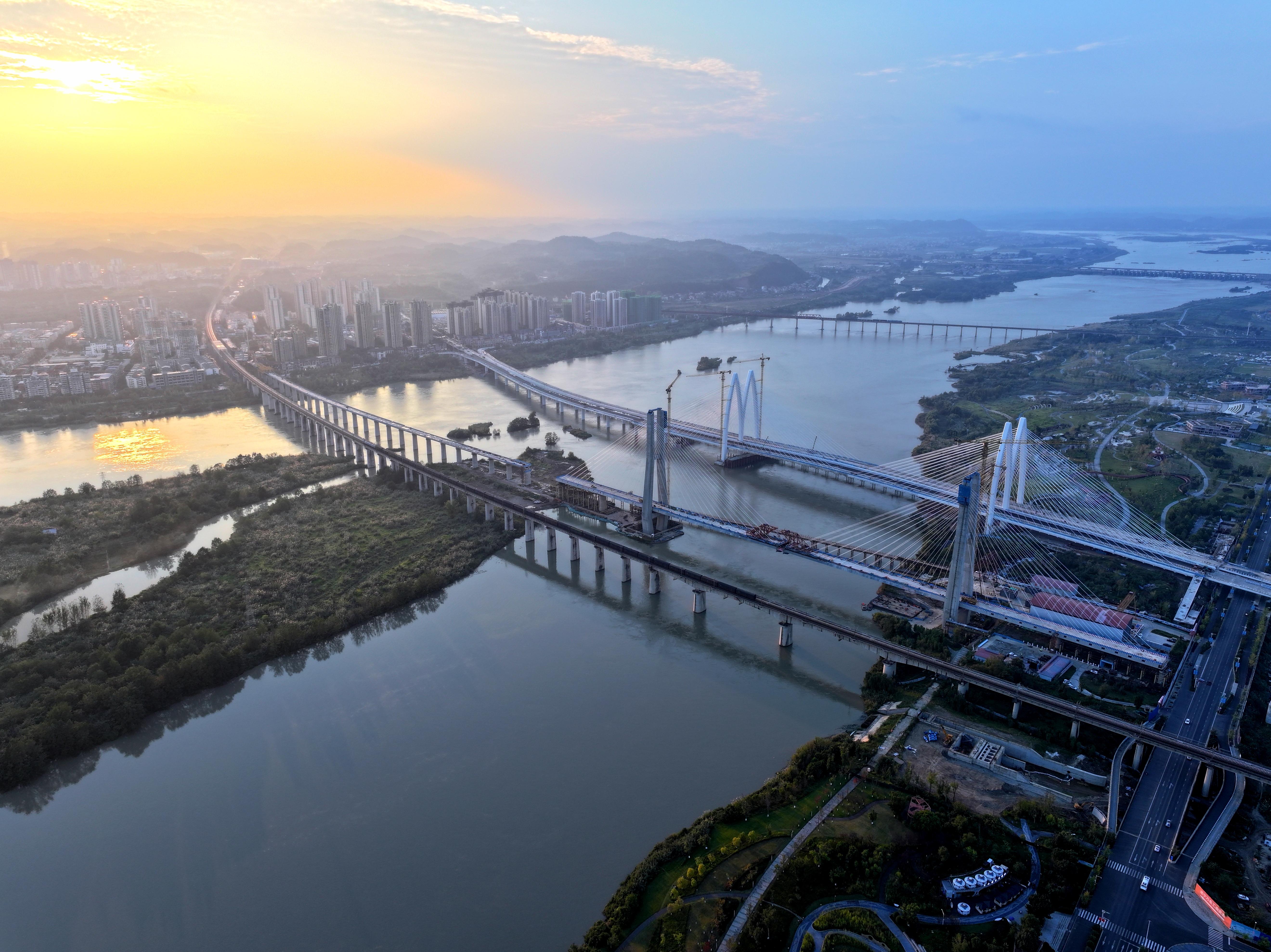 记者从成达万高铁公司获悉,10月14日10时许,随着最后一节钢箱梁的吊装和焊接,成都至达州至万州高速铁路(以下简称“成达万高铁”)全线控制性工程遂宁涪江特大桥顺利合龙,标志着我国西南第一跨度高铁钢混结合梁斜拉桥贯通。