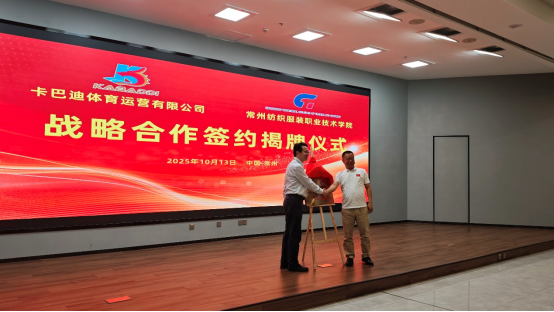 10月13日,卡巴迪体育运营(黑龙江)有限公司与常州纺织服装职业技术学院(以下简称“常州纺院”)战略合作签约暨“全国卡巴迪运动推广委员会华东办事处”揭牌仪式,在常州纺院举行。常州纺院党委副书记、校长洪霄表示:“本次合作旨在通过校企深度合作,探索‘教学+训练+赛事+产业’协同发展模式。”