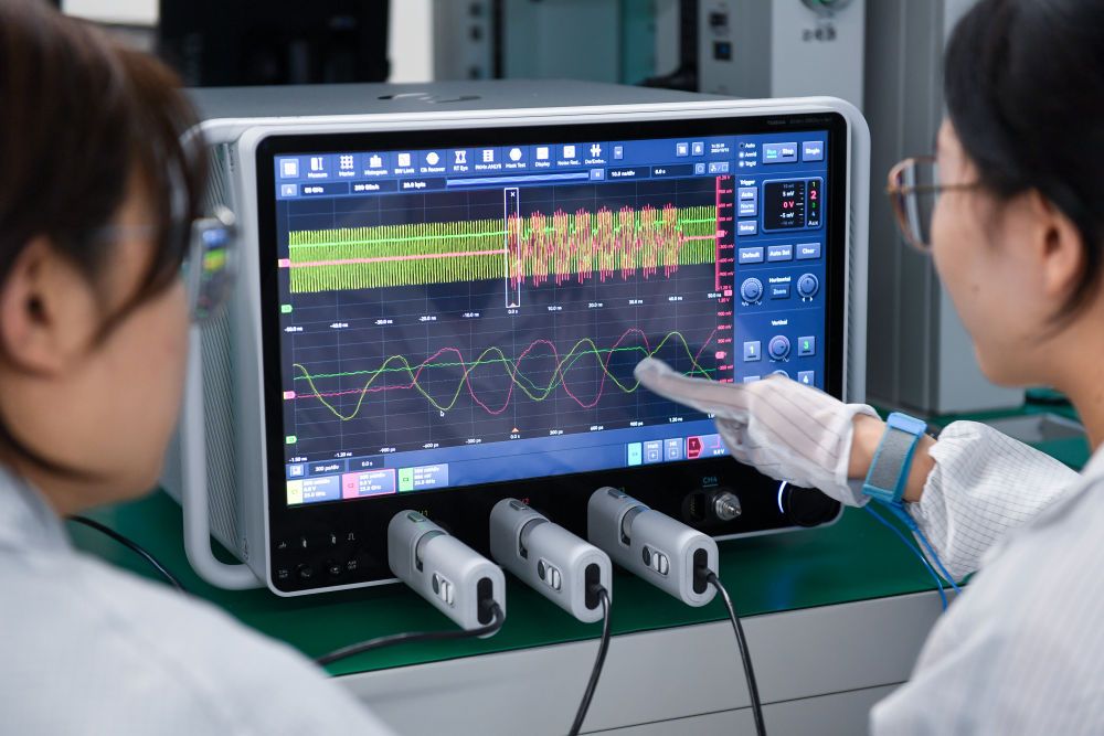 举例来说,在超高带宽下采集信号难度很大,就像“用漏勺接瀑布”,稍有不稳就难以“滤出”关键数据。无数次算法优化,提升“标刻”效率,最终实现信号采集处理性能、测试效率的全面升级和多代产品跨越。