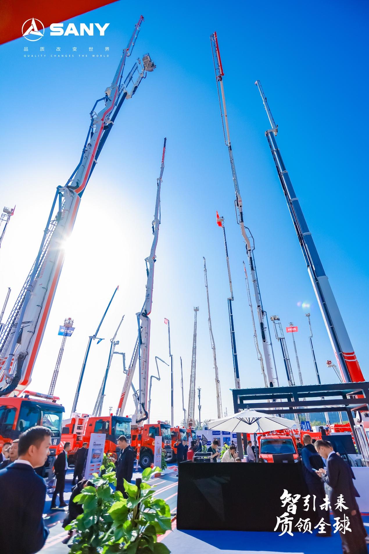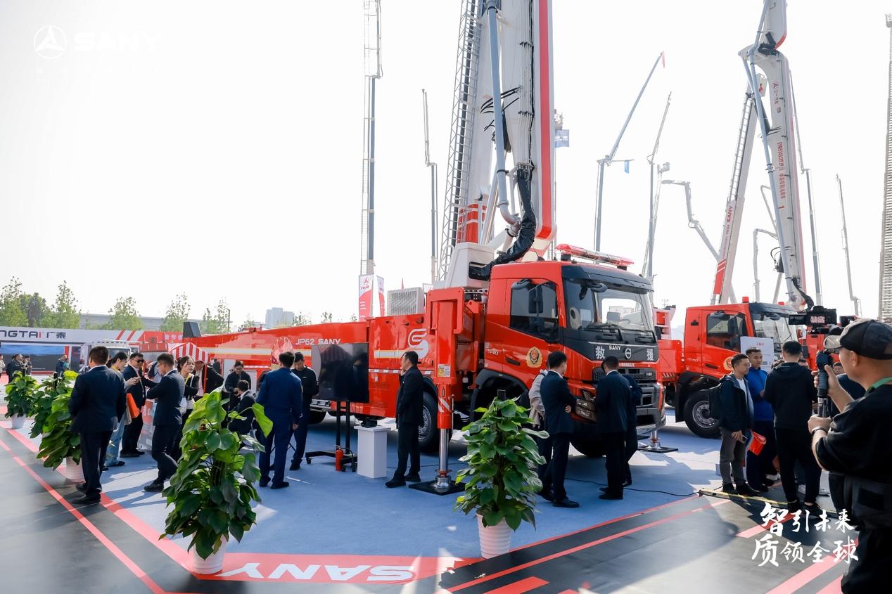作为大跨度举高喷射消防车全球首创企业,三一重工大跨度举高喷射消防车已开发形成30米级—60米级全系列产品,本次展会三一重工展出全球最高大跨度举高喷射消防车JP71,该车最大工作范围达到臂架高度71米,工作幅度大于58米。