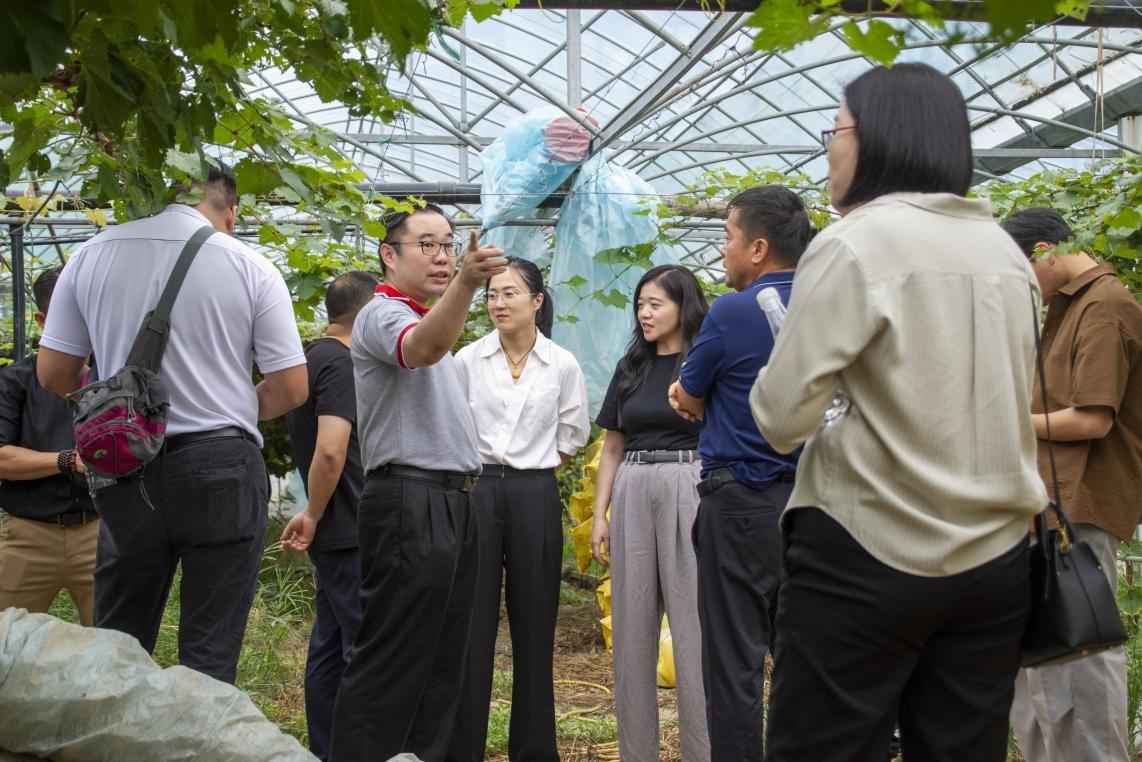 调研中,专家团队在九峰山片区考察重点业态,为乡村实际需求提出“定制化”解决方案。在清泰果园,专家团重点察看果树品种改良与数字化管理体系,围绕农产品产量提升、品质把控及市场销路拓展等问题,提出“生态防控+智慧溯源”的优化方案。在“碶彩农耕”旗舰店,专家团从国际农产品品牌包装、供应链优化视角出发,为特色农产品拓宽线上线下销售路径提供建议。在老城湾茶咖的互动交流中,专家团与村社干部、青年创业者代表直面“九峰回村计划”实施过程中的资源碎片化、跨村协作壁垒等痛点,提出组建跨国顾问团的常态化服务机制,将宁波职业技术大学的本土实践优势与英迪国际大学的国际化资源相结合,在技术研发、人才培育、成果转化等方面提供持续支持。