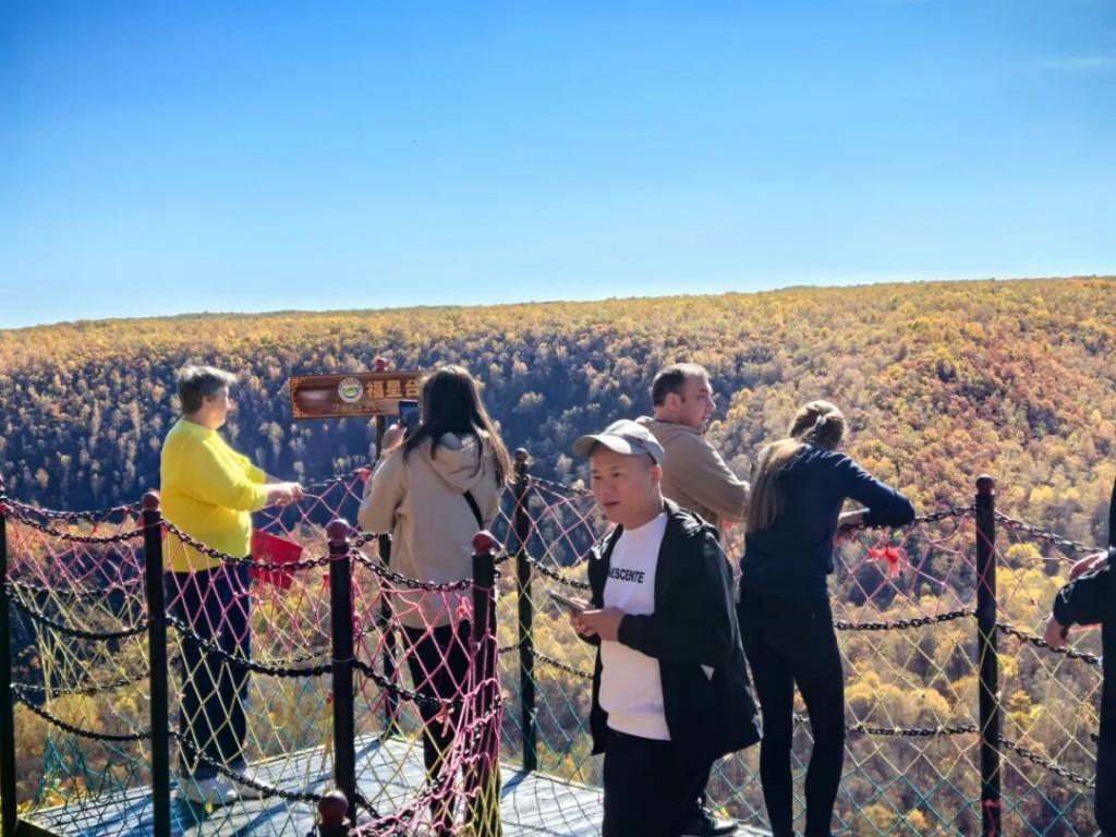 “正当梨花开遍了天涯,河上飘着柔曼的轻纱……”陶醉于黑河独特的壮美秋色,俄罗斯游客兴之所至的歌声,回荡在锦河大峡谷旅游风景区的五花山色中,这里也是俄罗斯游客“黑河行”的热门打卡点之一。风景区经理王光英介绍,为游客提供更加丰富的游玩体验,今年新增设了迷你滑索等娱乐设施。