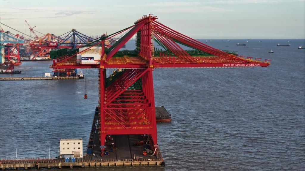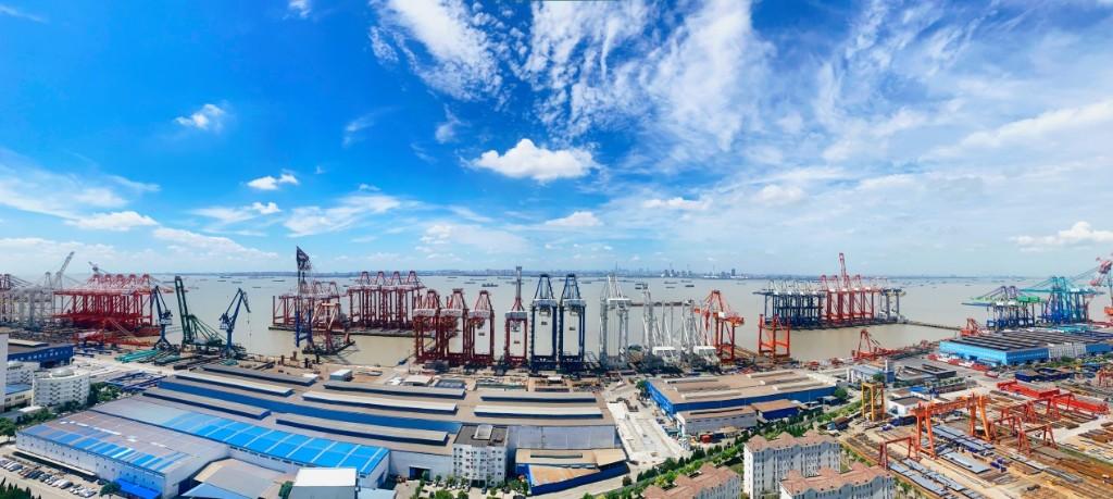 上海黄浦江入海口有座小小的岛屿——长兴岛,其上分布着多家大型海洋装备制造企业。在长兴岛南侧,5公里长的海岸线范围内,排列着200多台数十米高、色彩各异的岸桥,向着海面伸出长长的钢铁“手臂”。