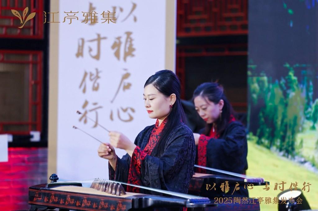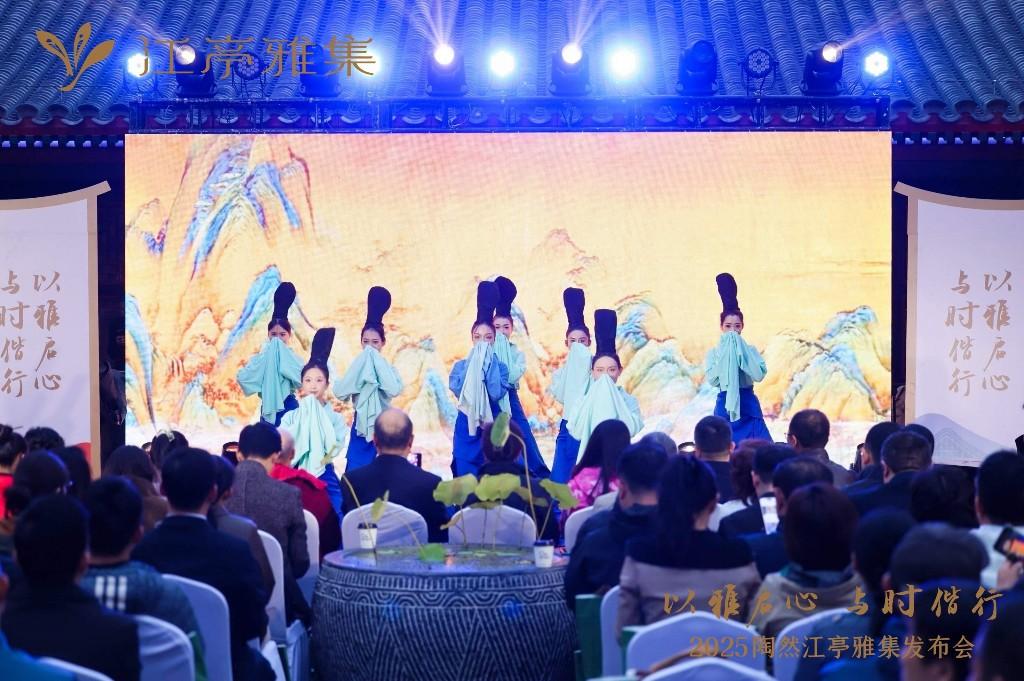 活动突破传统线下模式,借助数字技术实现文化传播升级:故宫博物院第六任院长单霁翔通过视频寄语,远程分享文化遗产保护与活化见解,让优质文化资源突破空间限制触达现场;江亭雅集LOGO发布环节,品牌设计师贺冰淞以视频形式解析设计理念,将三尾游鱼象征的“悠游万象”、古琴曲《猗兰操》蕴含的“幽兰之姿”等抽象内涵,通过可视化画面直观呈现,让传统文化符号更易被理解与感知。