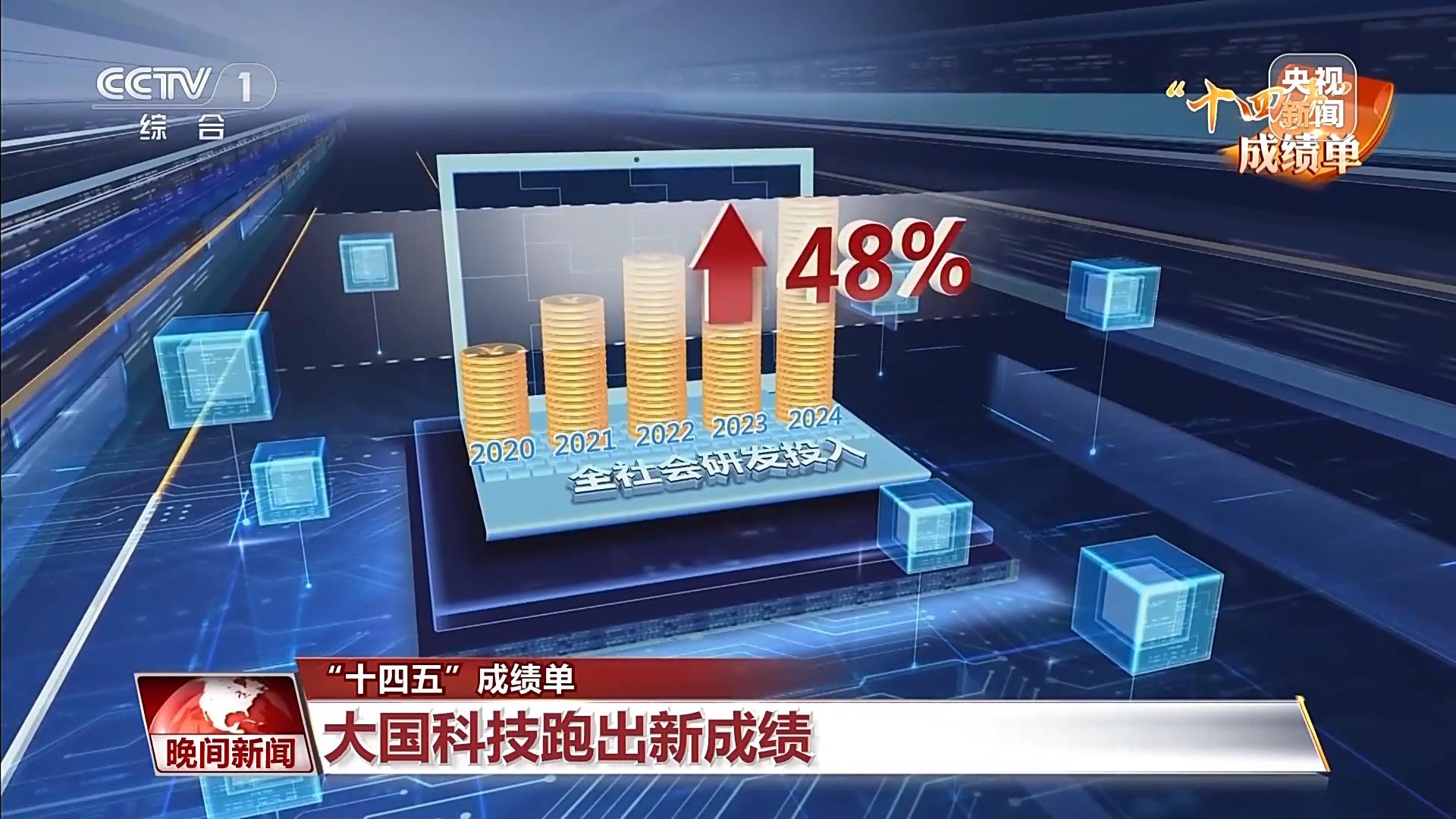 数据显示,2024年,全社会研发投入超3.6万亿元,较2020年增长48%;研发投入强度超过欧盟国家平均水平;研发人员总量世界第一。