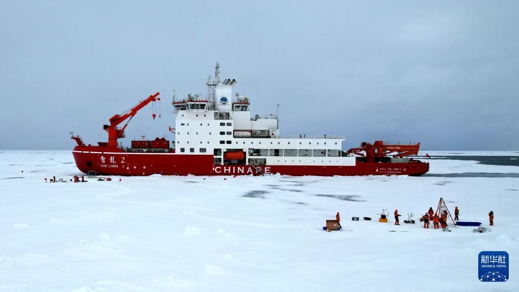 8月23日凌晨1时50分,北纬84度56分。极昼的阳光洒向冰面,“雪龙2”号犹如一座科学城堡“嵌”在海冰之中,队员们下到冰面,开始首个短期冰站作业。