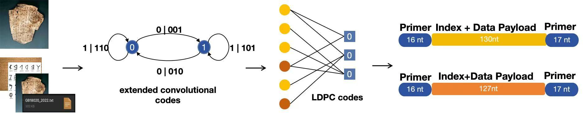 吴华明介绍,该方案通过设计阶梯式交织结构和迭代式软判决解码机制,在不依赖复杂多序列比对的情况下,有效校正了插入、删除、替换等典型合成错误,同时具备并行解码能力,有助于实现大规模数据的高效检索。