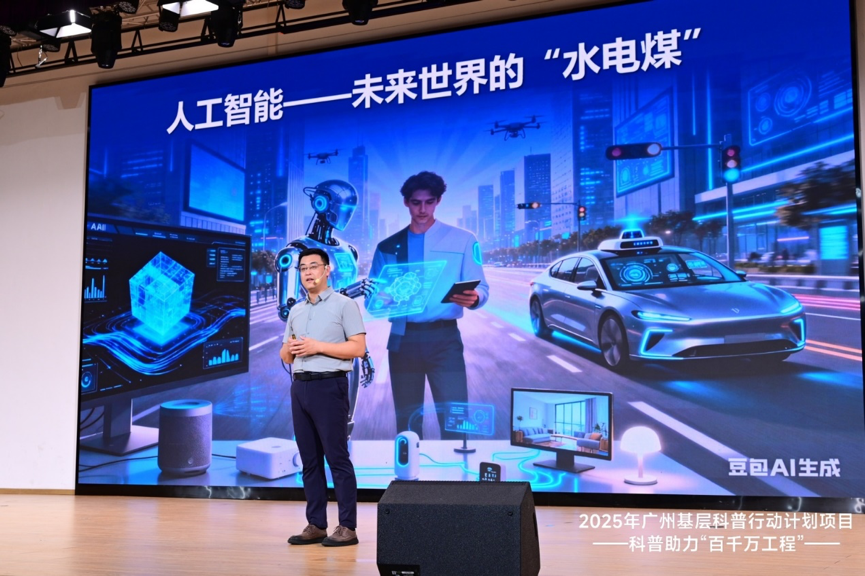 10月16日,2025年广州基层科普行动项目——科普助力“百千万工程”暨新质生产力“AI•向未来”专场活动在广州外国语学校附属学校举办。作为2025年广州基层科普行动“新质生产力系列”的重要场次,本次讲座聚焦AI的落地应用,拒绝“空谈技术”,用真实案例展现人工智能如何成为推动城市治理与企业发展的“核心引擎”。