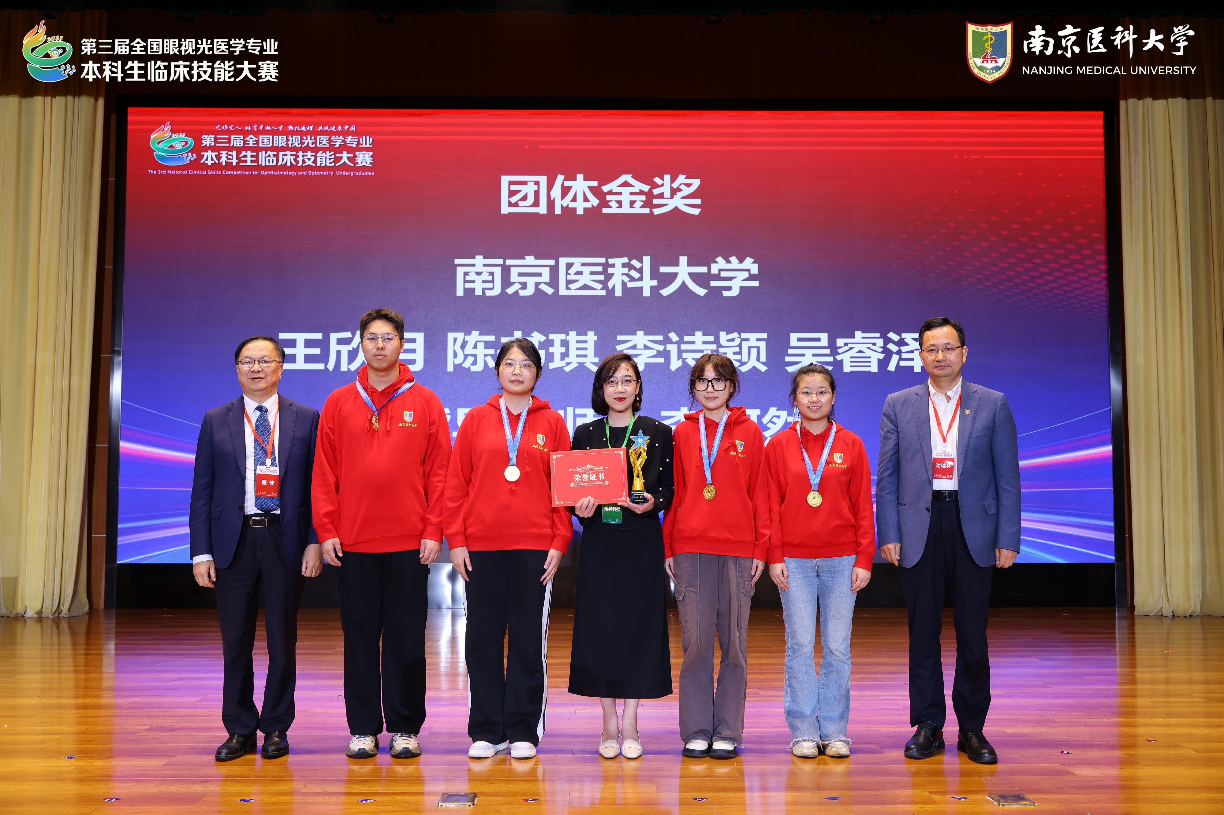 经过一天的激烈比拼,大赛产生金奖3个、银奖6个、铜奖12个,个人风采奖3个,单项优胜奖5个,大学生眼健康科普海报最佳设计奖7个、最佳创意奖7个、最佳传播奖7个。南京医科大学学生团队荣获团体金奖且总成绩排名第一,在“外眼和眼前节检查”项目中,吴睿泽同学荣获单项优胜奖,陈书琪同学荣获个人风采奖。南京医科大学选送的作品《干眼症大作战——当“绝症”遇上中医》在大学生眼健康科普海报巡展中荣获“最佳设计奖”。