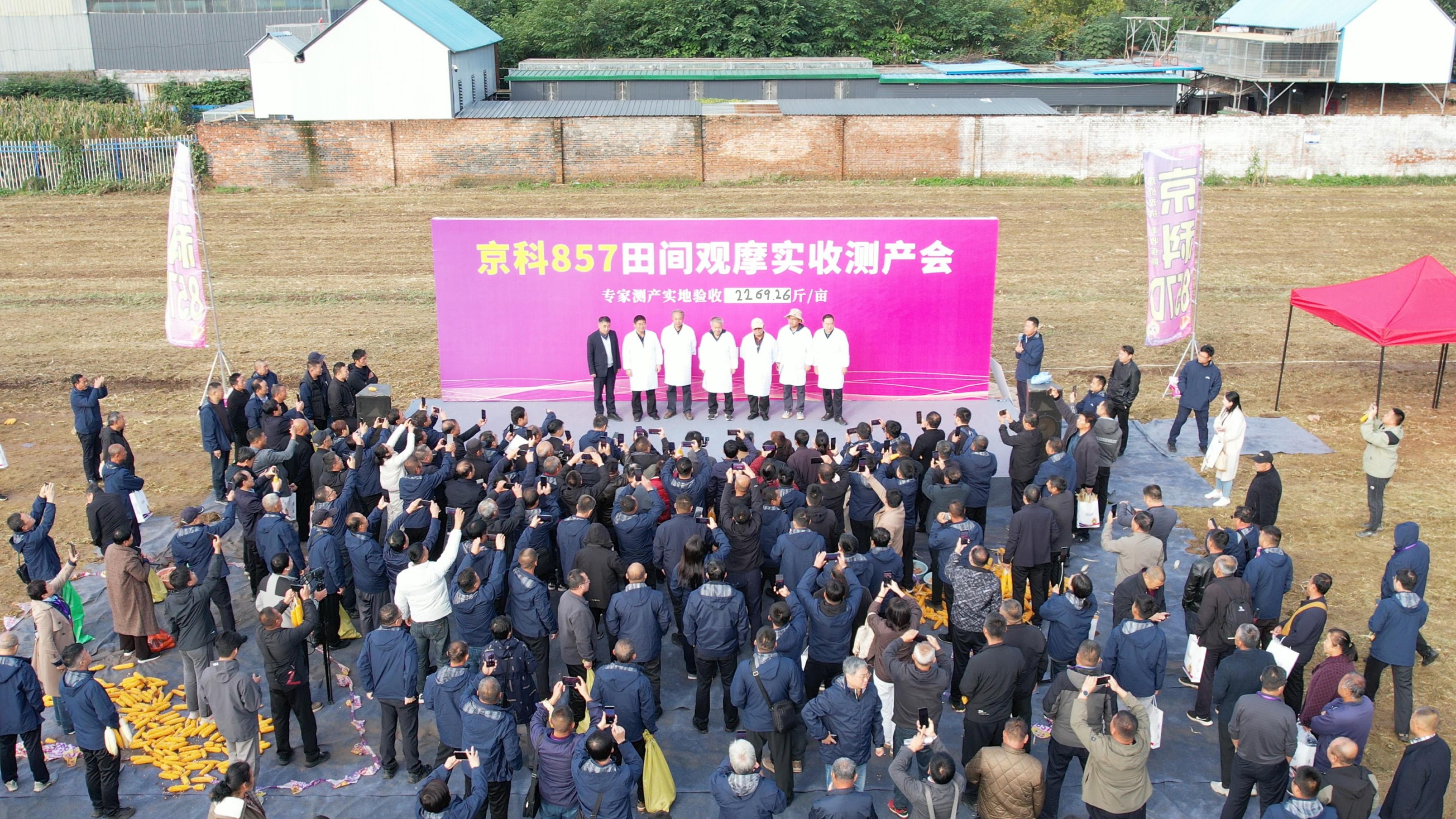 10月18日,在由北京市农林科学院、河北兆育种业集团有限公司、北京大北农生物技术有限公司联合主办的“加快京津冀一体化重大科技成果京科857新品种产业化推进暨田间观摩实收测产会”上,实收测产专家组现场宣布:“京科857”玉米实测平均亩产达到1134.63公斤,达到高产水平。