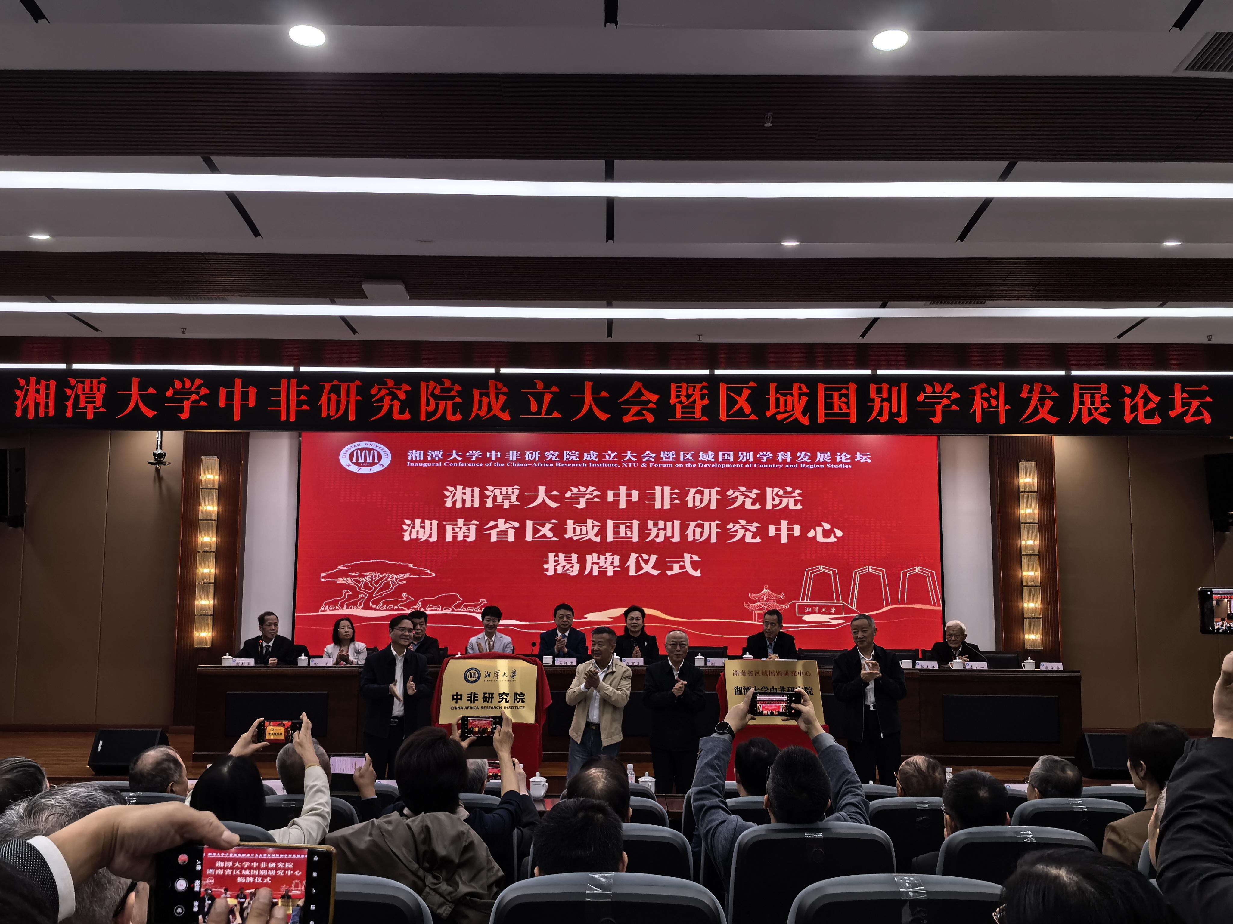 10月19日,湘潭大学中非研究院成立大会暨区域国别学科发展论坛在湖南省湘潭市举行。会上,湘潭大学中非研究院(以下简称“中非研究院”)正式揭牌成立。据悉,这也是湖南省首家挂牌的“区域国别研究中心”。同日,湖南省区域国别研究中心揭牌。