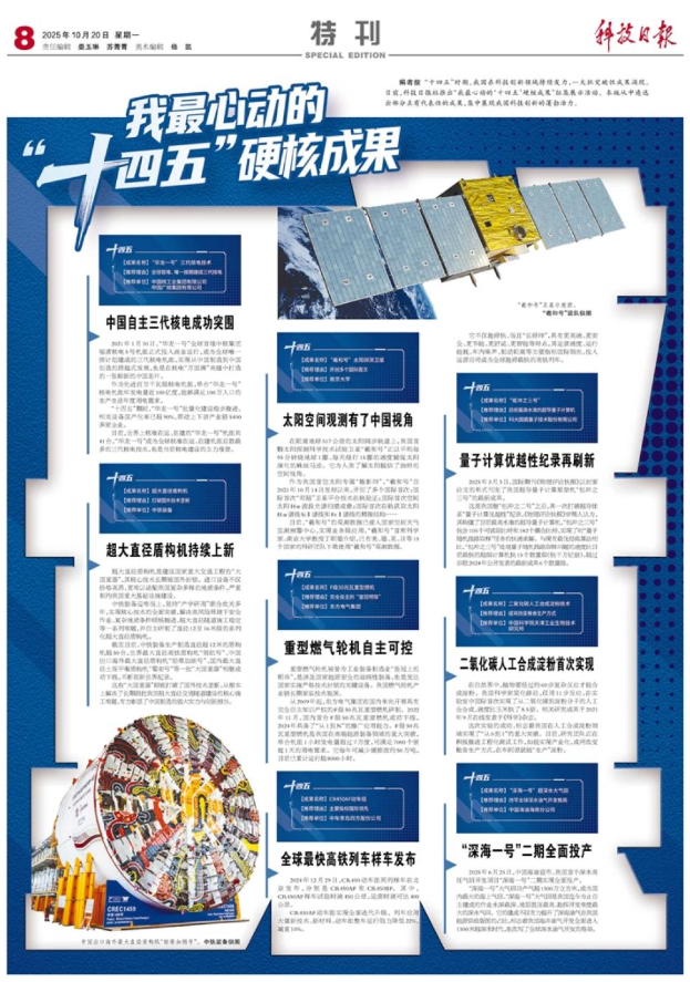 编者按 “十四五”时期,我国在科技创新领域持续发力,一大批突破性成果涌现。日前,科技日报社推出“我最心动的‘十四五’硬核成果”征集展示活动。本版从中遴选出部分具有代表性的成果,集中展现我国科技创新的蓬勃活力。