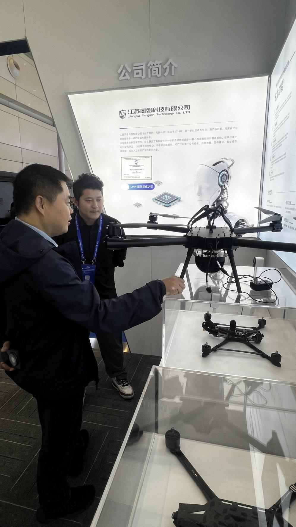 记者进入展馆就被对面巨幅大牌上“边缘之力,稳如磐石”吸引。这块展板来自江苏风磐科技有限公司(以下简称“风磐科技”)。作为深耕人工智能领域的创新企业,风磐科技自主研发的便携式磐石视图智能分析管理系统,以边缘计算AI技术为核心,在产品创新、市场应用与社会服务中实现多重突破。该企业展位上展示了磐石视图智能分析管理系统、磐石之眼摄像头、磐石探路者无人机等参展产品。
