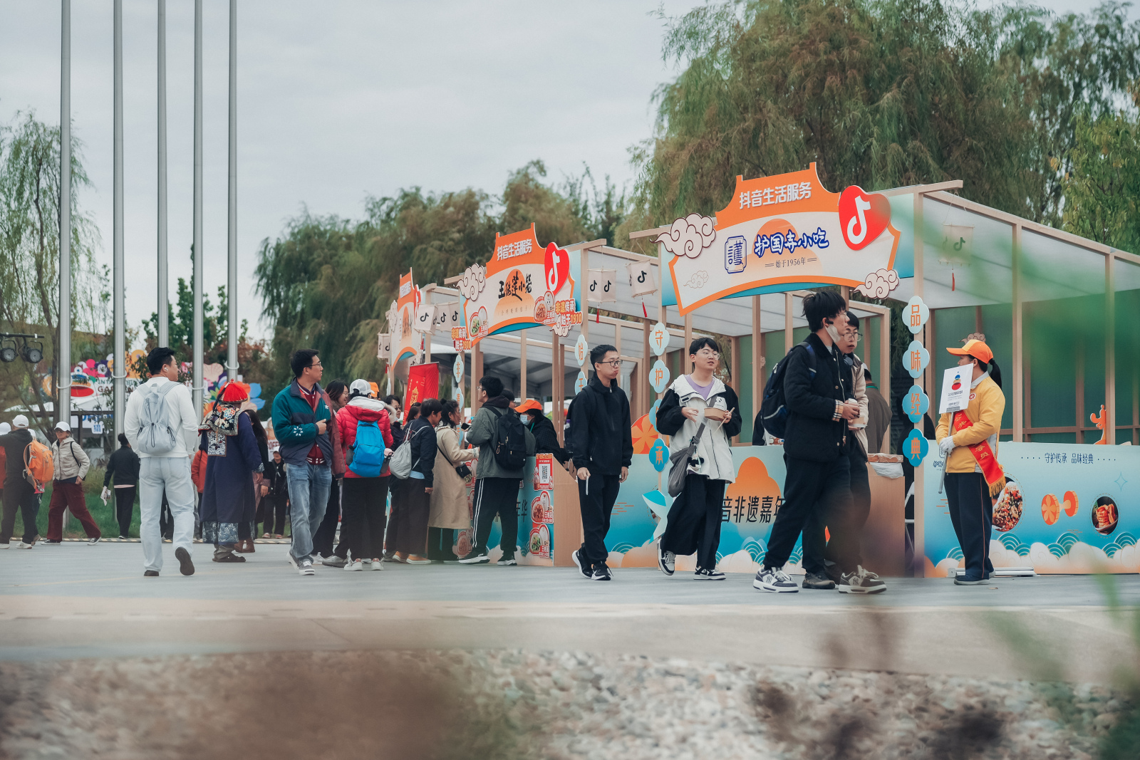 位于城市绿心森林公园的“非遗市集·共享生活”是2025北京国际非遗周另一大重要板块。抖音生活服务在市集现场设置“心动装置”打卡点,以北京非遗“景泰蓝”为灵感,采用缠枝莲纹与祥云纹勾勒,四周点缀北京沙燕风筝、北京绢花、竹编等非遗元素,吸引了众多游客打卡合影。同时,抖音生活服务还在市集设立非遗摊位,联动北京稻香村、护国寺小吃、王继莲小笼包等多家特色老字号商家,推出非遗定制套餐,让现场观众品尝到地道非遗美味。
