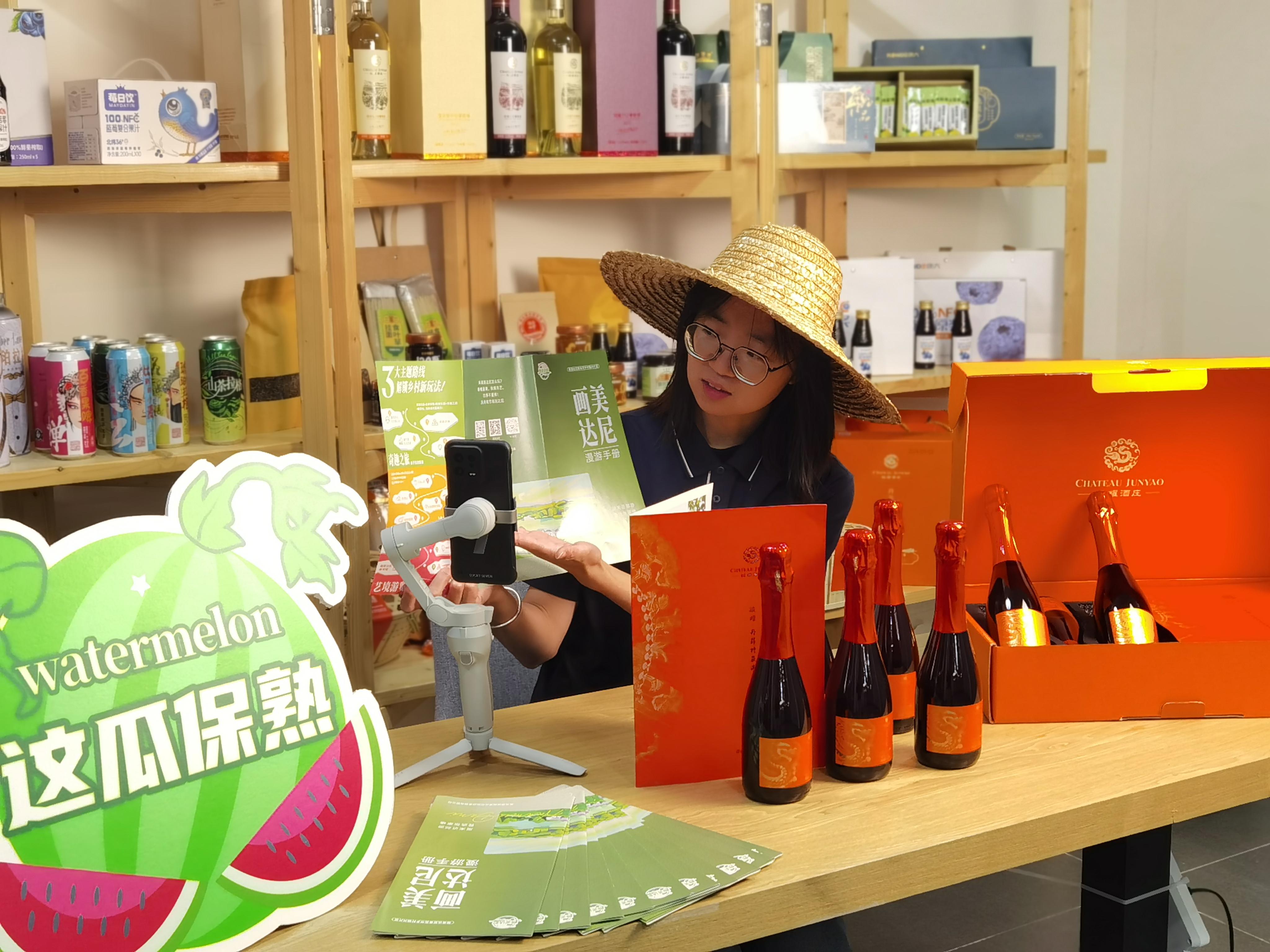 在张家楼街道画美达尼乡村振兴片区,像张茂华这样的乡亲主播还有很多。他们从传统农民、农场主转型为家乡的“流量操盘手”和“故事讲述者”,在“赛博世界”里留下鲜活的乡村印记。他们中有人蹲守樱花盛放期,在千亩樱园开启“沉浸式赏花”直播;有人聚焦蓝莓采摘季,手持挂着白霜的新鲜蓝莓当场试吃测评。大崔家庄村书记郑梅打造的“书记带您去嗨楼”系列个人IP,带着团队走进500年树龄的银杏广场、充满艺术气息的绿泽美术馆农民画家工作室,用质朴乡音讲述村庄历史与文化,一条视频点赞量超5万。