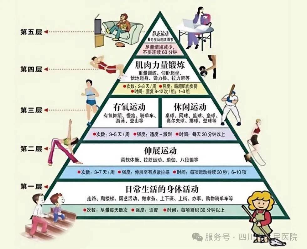 运动有一个“运动金字塔”,帮你合理搭配每周运动,让健康效果事半功倍。